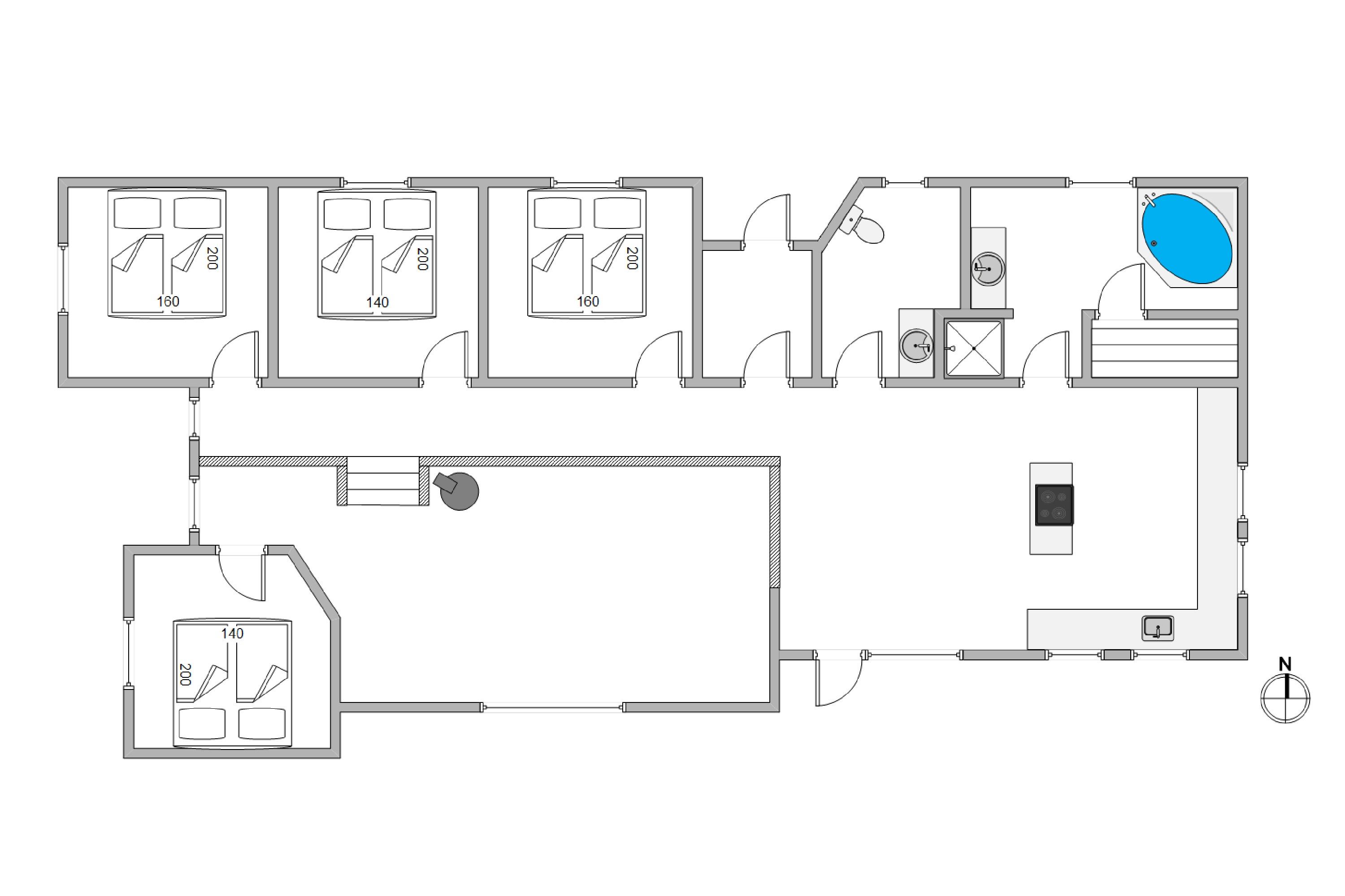 Derudover er der i dette feriehus lavet separat baderum og wc-rum, hvilket er praktisk, når du har en større familie, eller hvis du gerne vil have nogle afslappende stunder i spaen eller saunaen, som findes i baderummet.