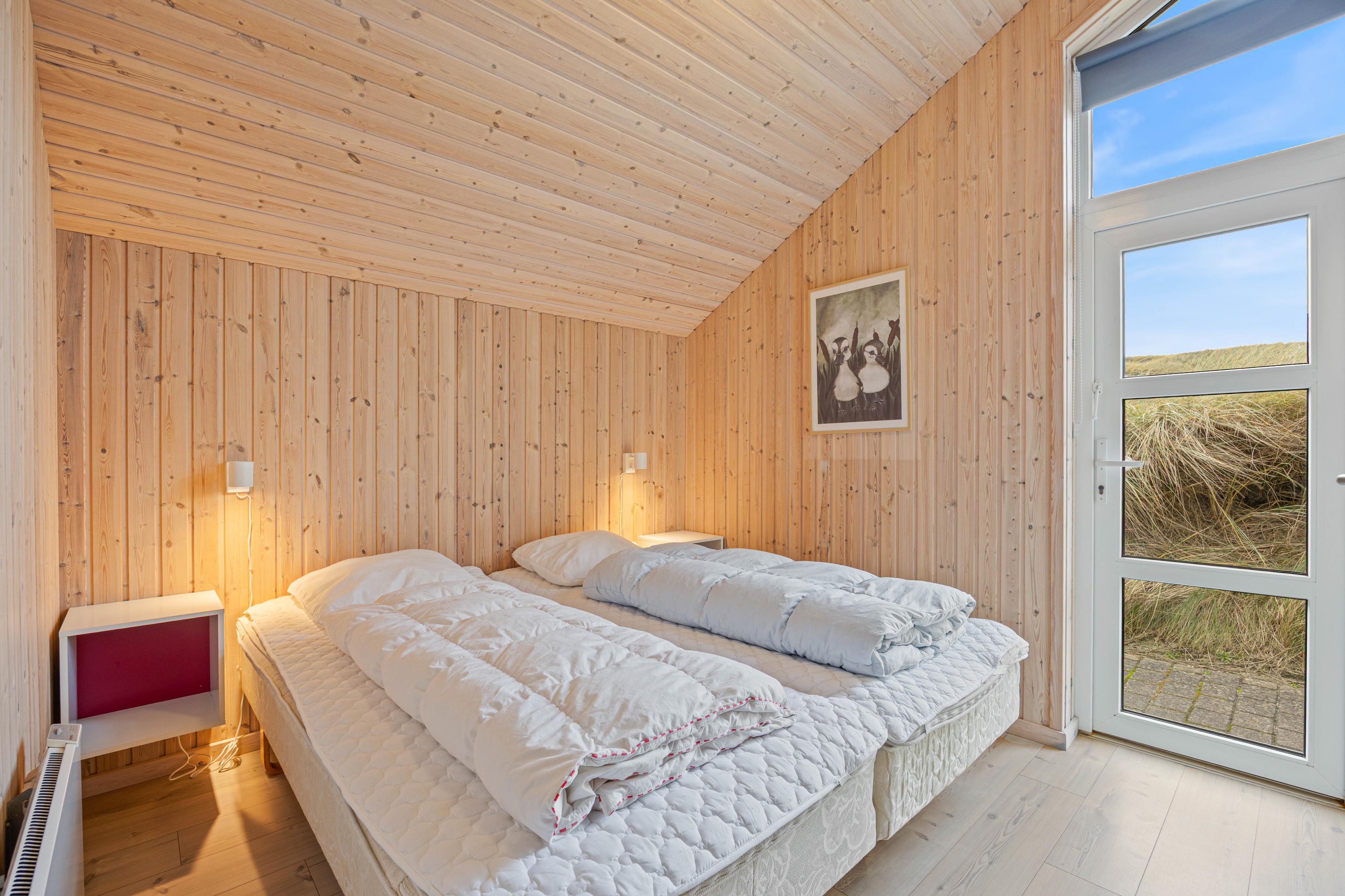 Det drejer sig om et smukt sommerhus i perfekt beliggenhed ved klitterne. Huset er rummeligt og alligevel hyggeligt. Fra hvert soveværelse er der en smuk udsigt til klitterne. Også stuen er meget indbydende takket være den rummelige glasfront (med uhindret udsigt til klitterne). Med to badeværelser og badekar er det også velegnet til større familier. Garagen giver gode opbevaringsmuligheder, og der er også en ladeboks til elbil.