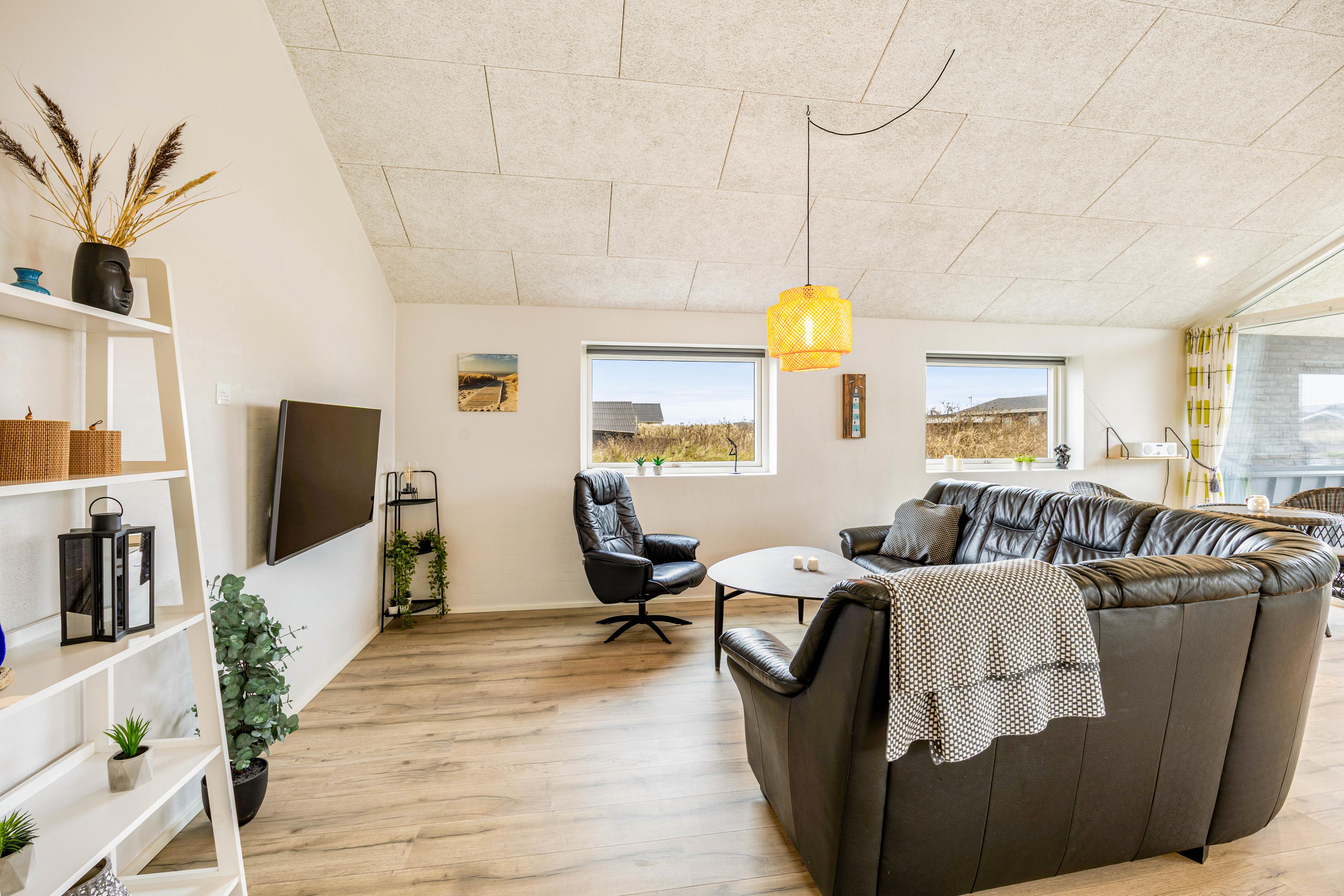 Super beliggenhed, lige bag klitterne. Meget godt udstyr. Kun saunaen kunne være en smule større. Meget smal siddeflade.