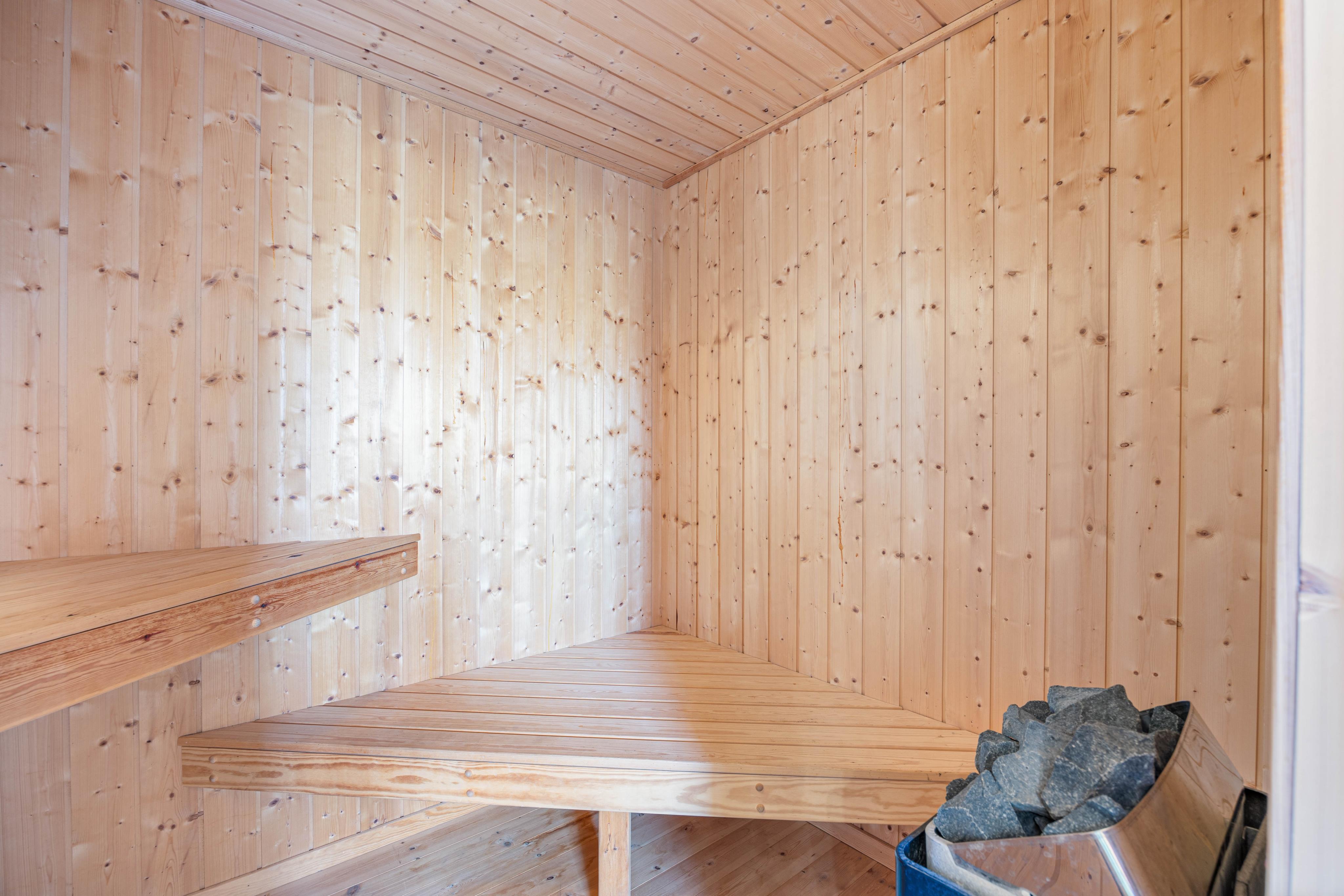 Har I brug for lidt ekstra wellness? På det ene af sommerhusets 2 badeværelser har I jeres helt egen wellnessoase med sauna og spabad. Tank ny energi i det varme boblebad eller få varmen i saunaen efter en gåtur i den friske havluft.