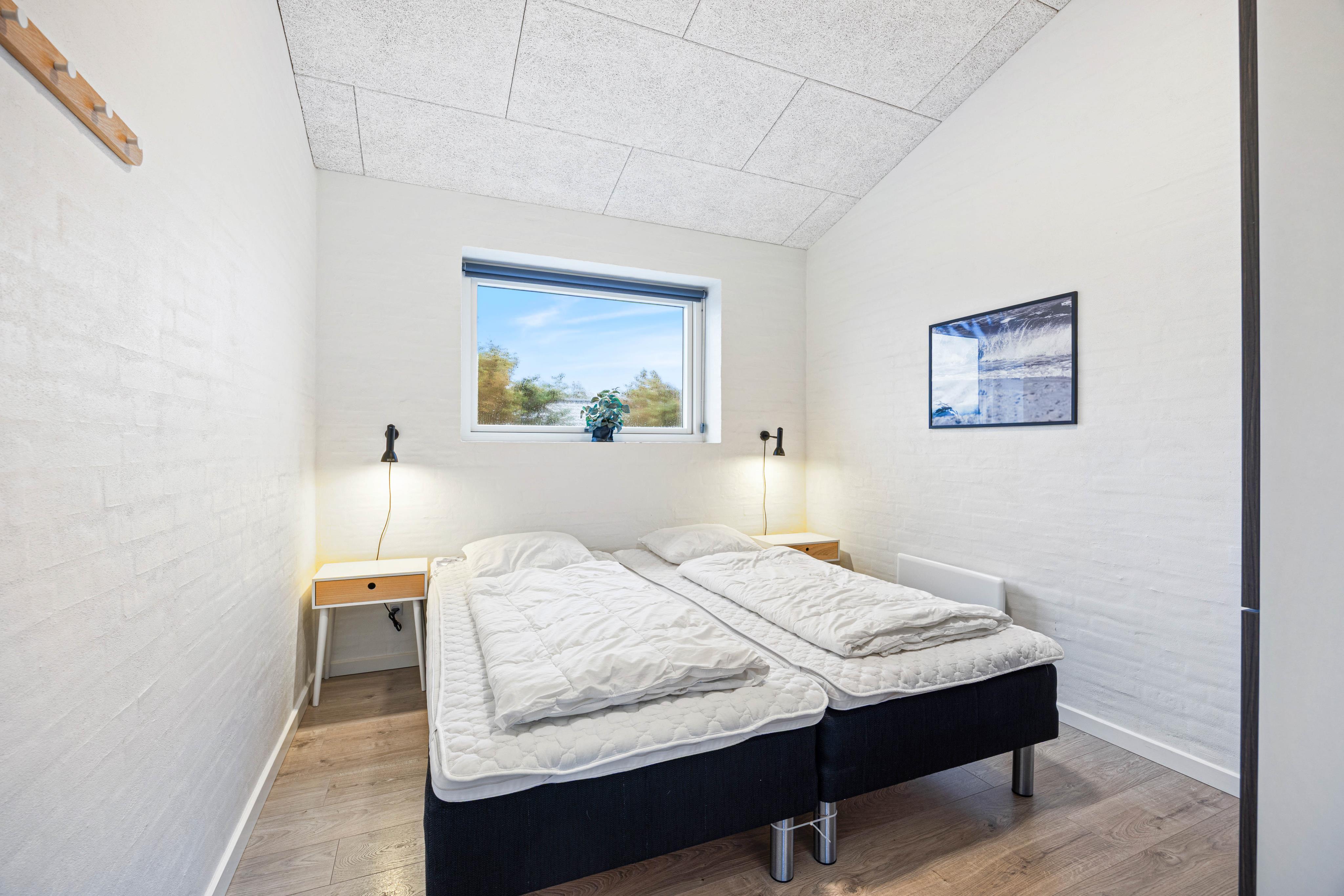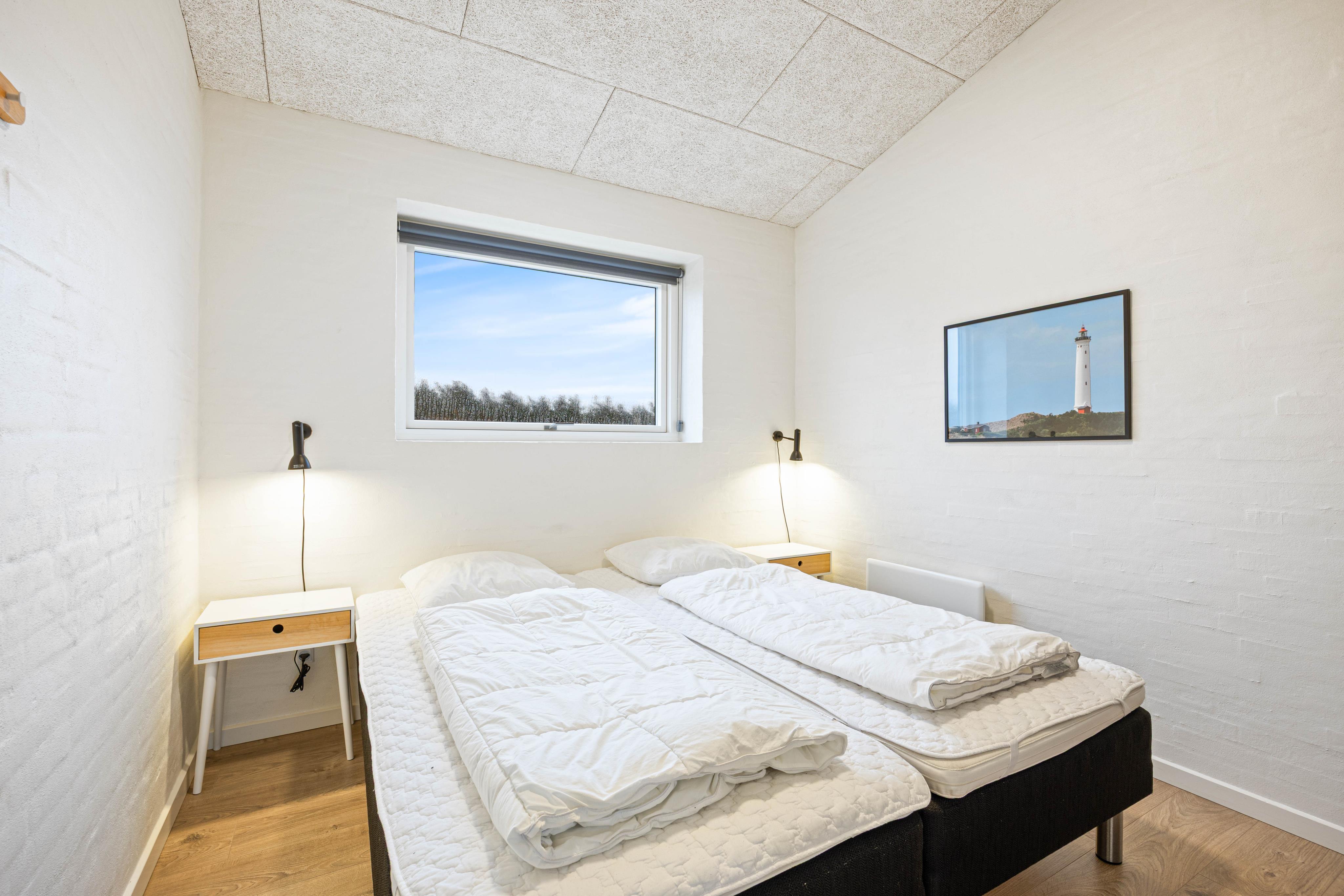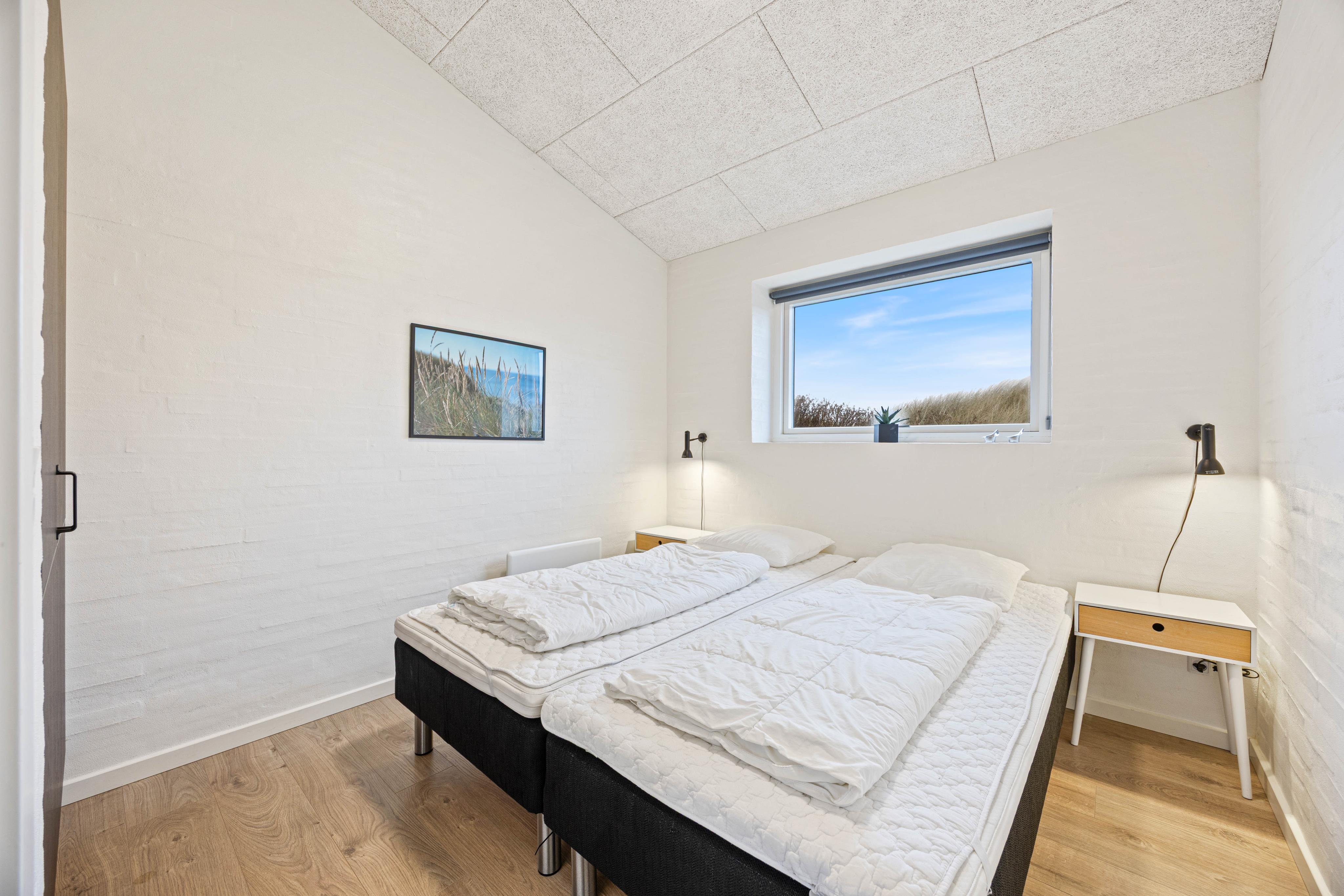 Feriehuset har 4 værelser og 2 badeværelser og kan derfor nemt opdeles i to afdelinger på hver sin side af opholdsrummet.