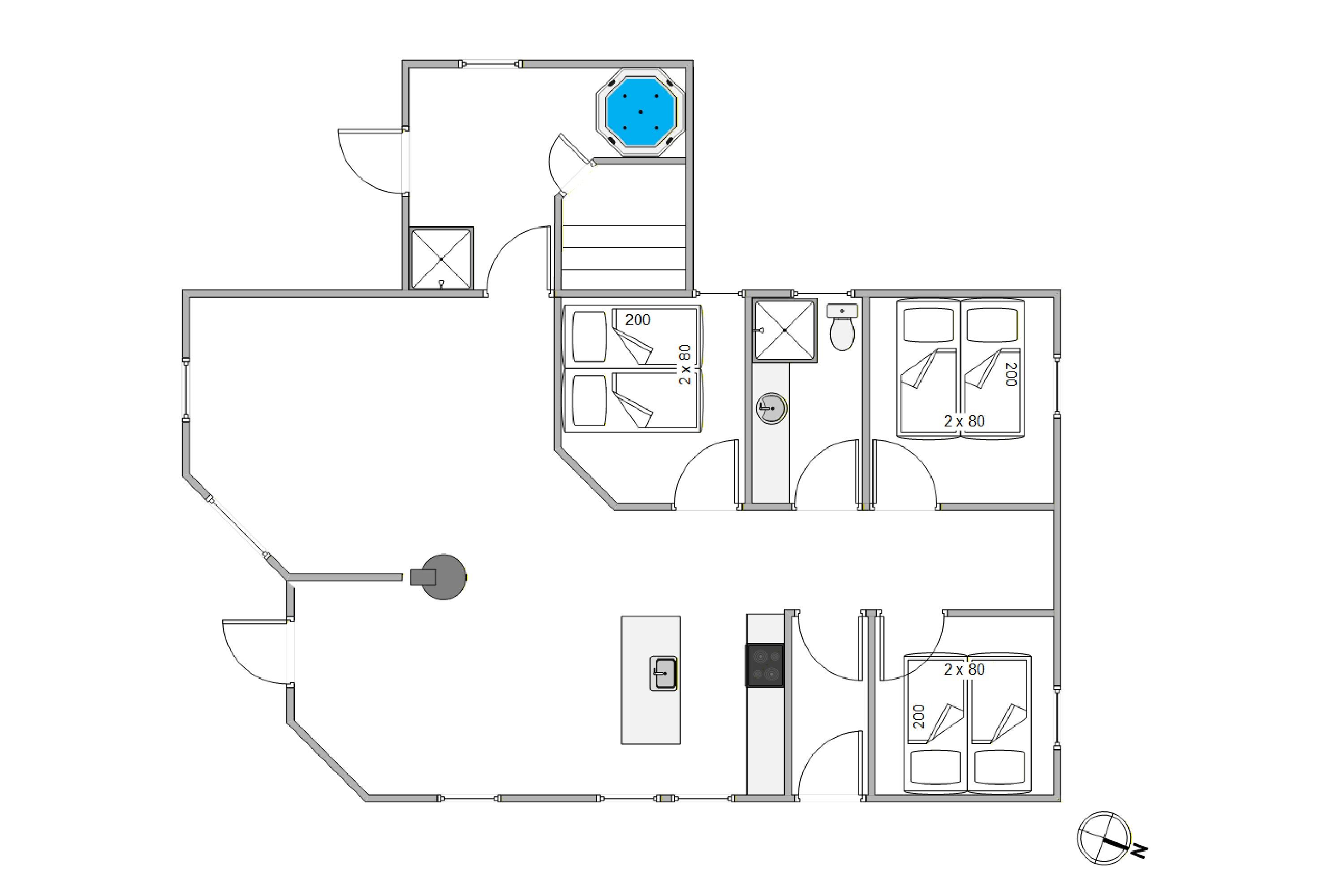 Et lille hyggeligt sommerhus med 6 senge. Huset er perfekt til 4 personer. Sauna og whirlpool kan bruges godt af 4 personer. Der er flere siddepladser udenfor.