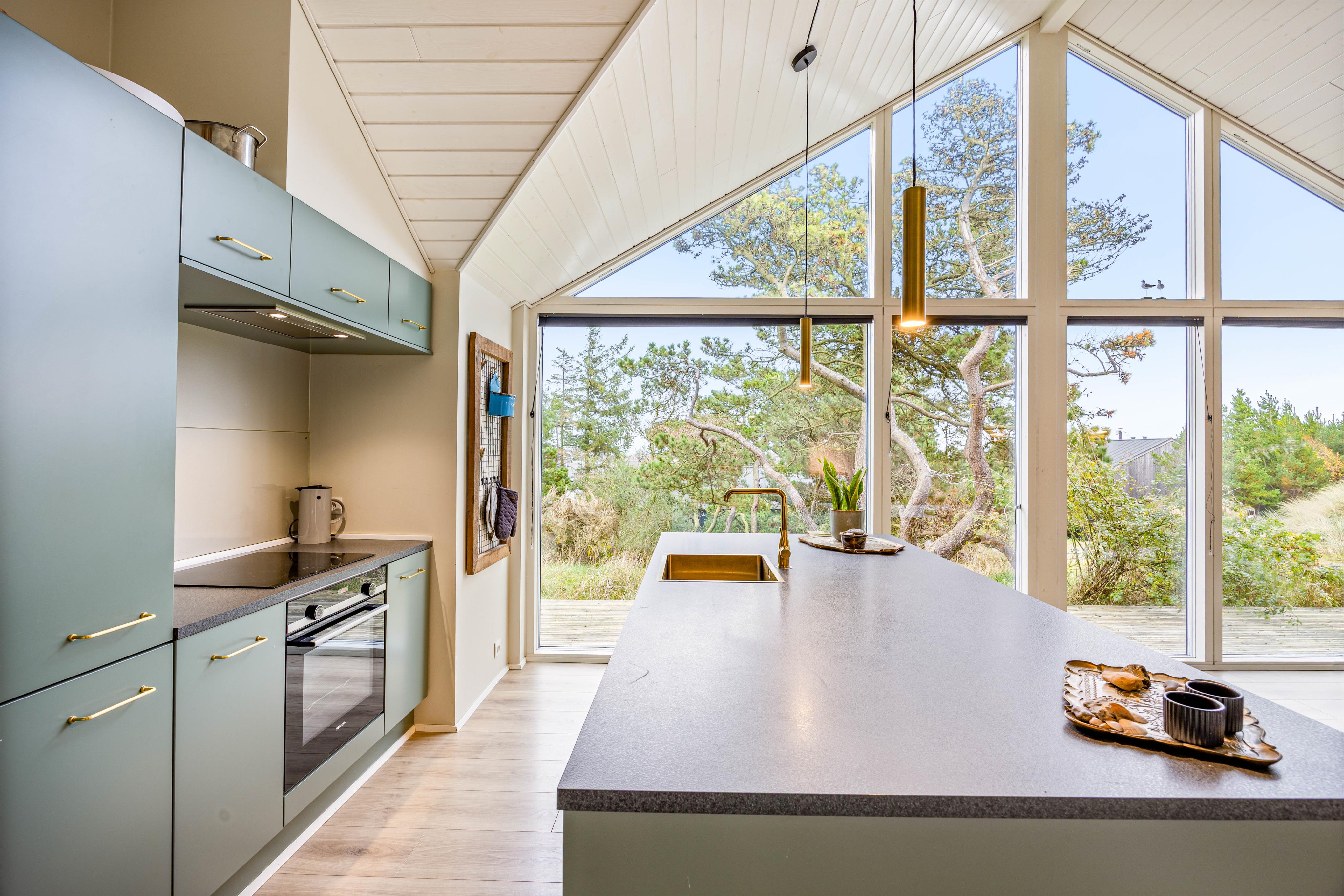 Meget moderne, rent feriehus med meget god indretning og udsigt over Hvide Sande og fjorden