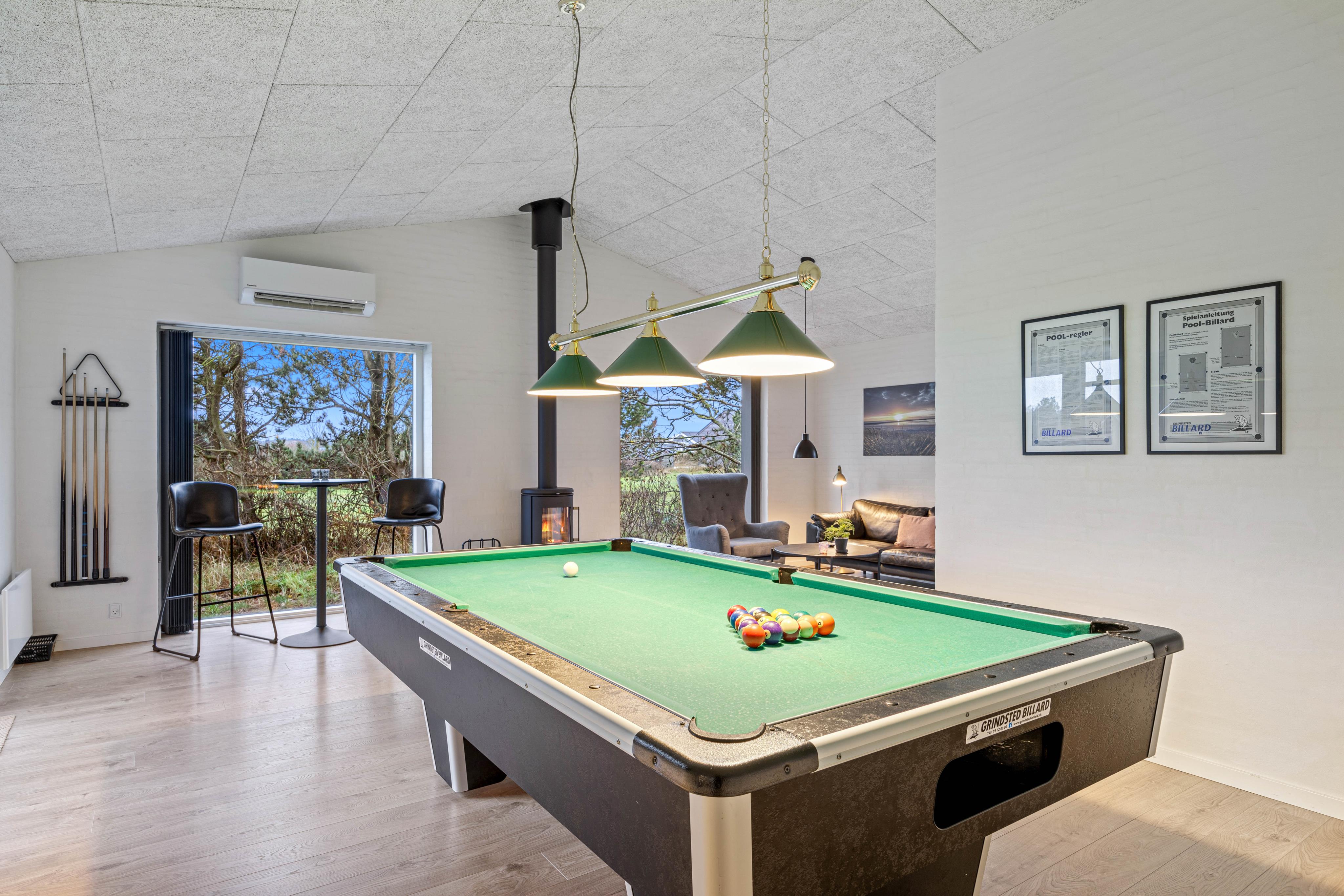 Et af feriehusets indendørs highlights er billardbordet. Her kan I samle hele flokken til en hyggelig turnering, hvor feriens ultimative billardmester kan blive kåret. Det perfekte spot, hvis vejret ikke arter sig, eller der skal slås mave oven på en lækker feriemiddag.