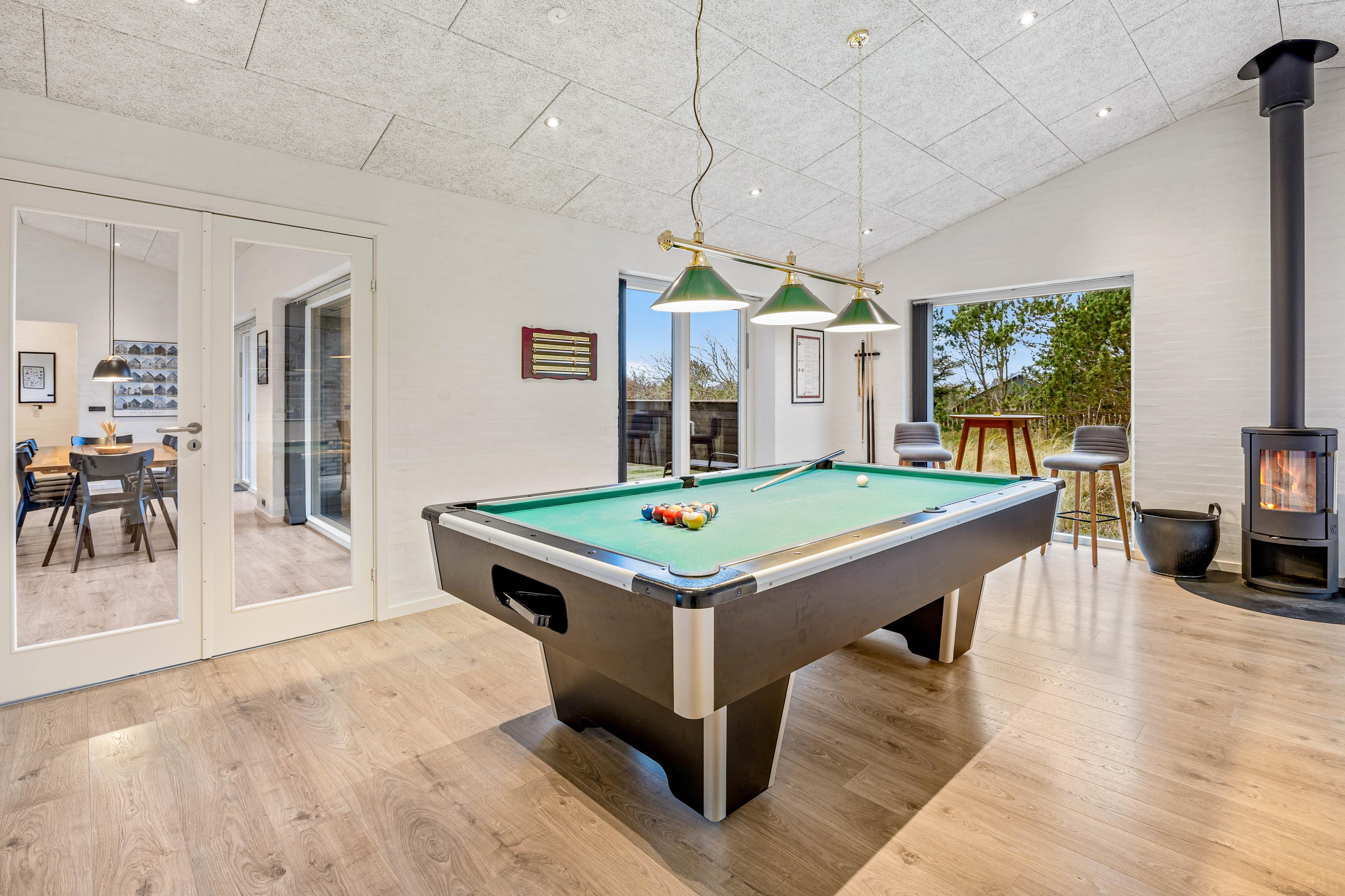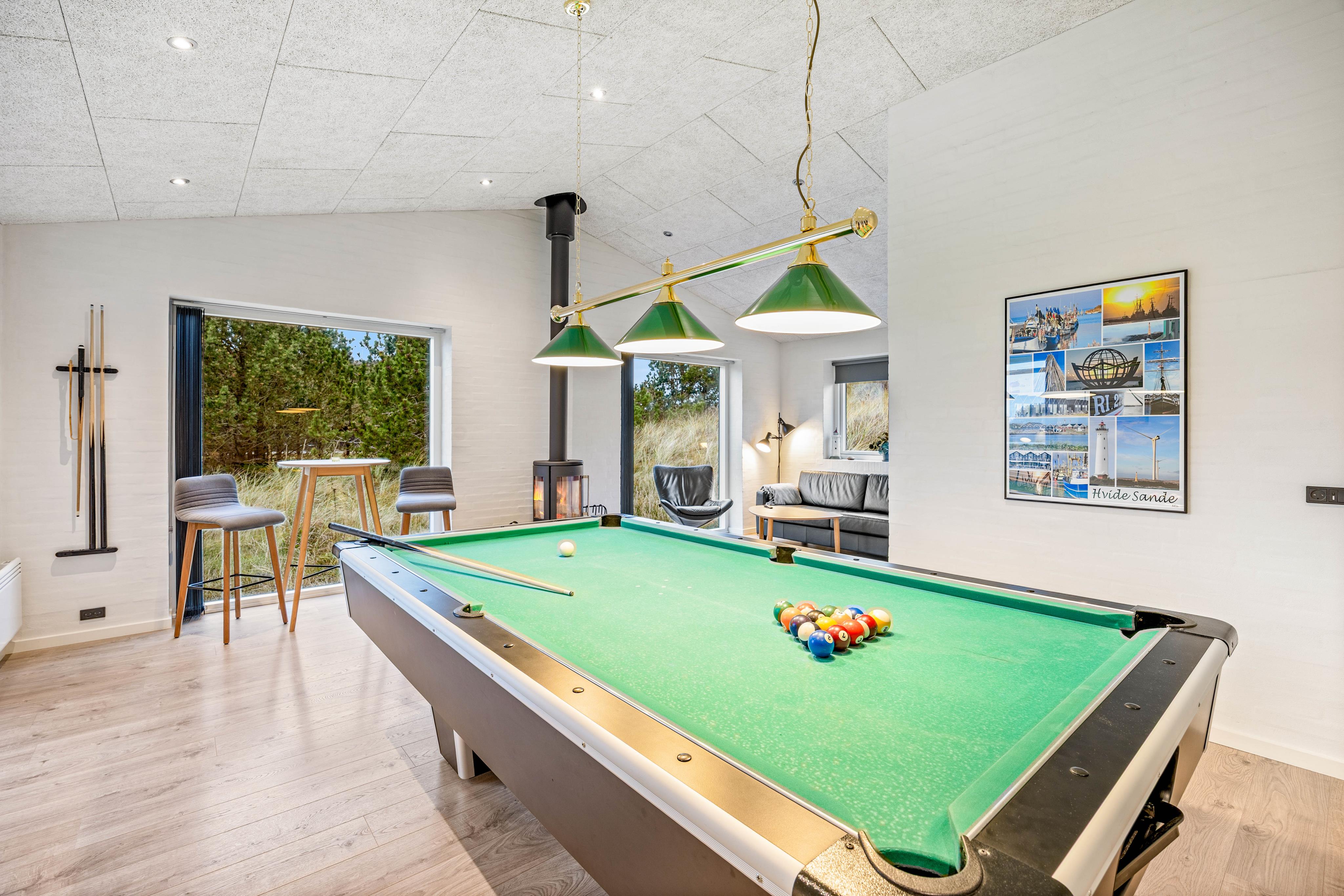 Underholdningen finder I i det kombinerede stue- og aktivitetsrum. Her står billardbordet klar, så I kan udfordre hinanden på kryds og tværs.