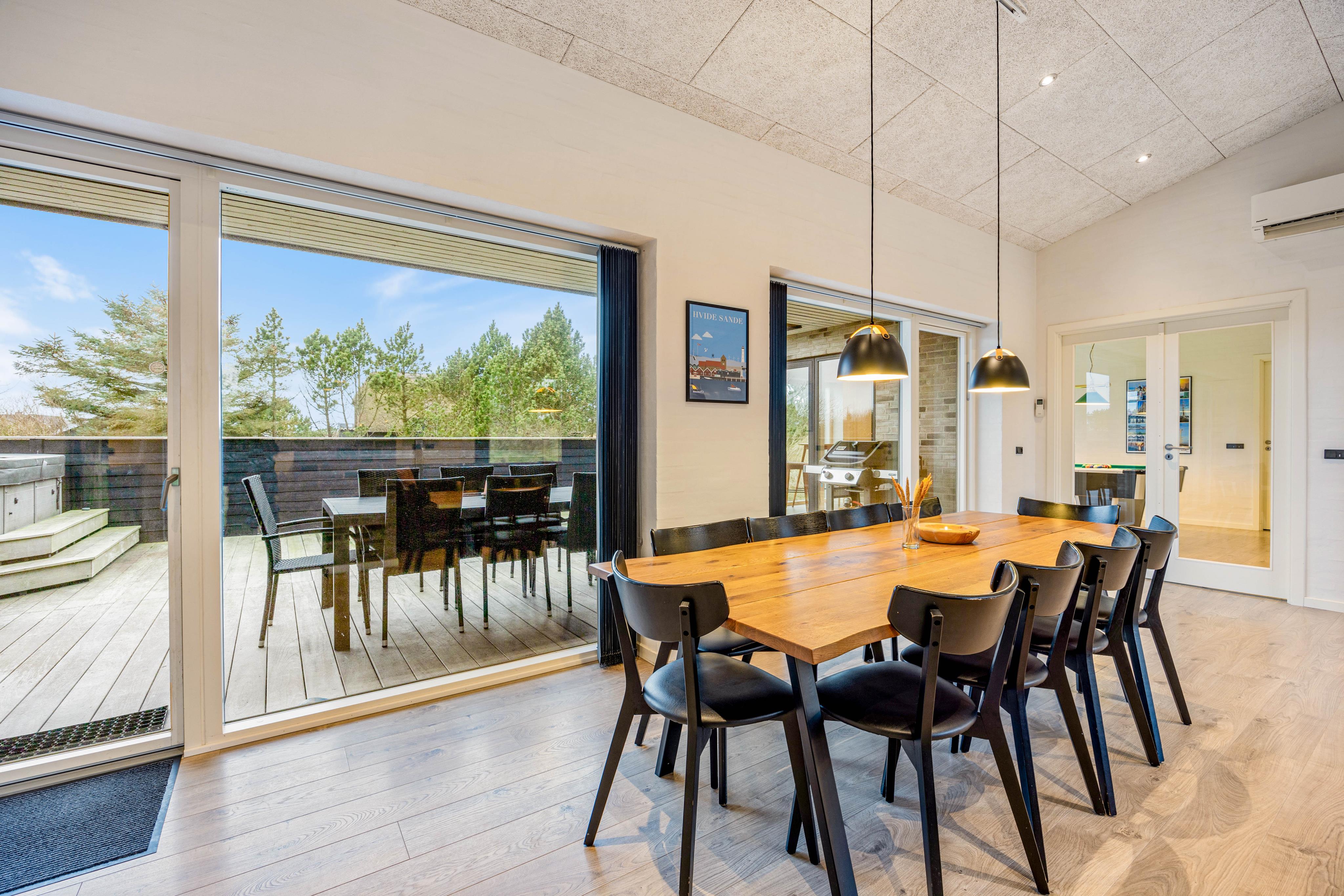 Et meget smukt hyggeligt stort feriehus. Vi var der med 6 voksne, 2 børn og 2 hunde. Dejligt er det separate store rum med billardbordet. Stor indhegnet terrasse med dejlig whirlpool. Huset ligger for enden af vejen, derfor er der meget roligt.