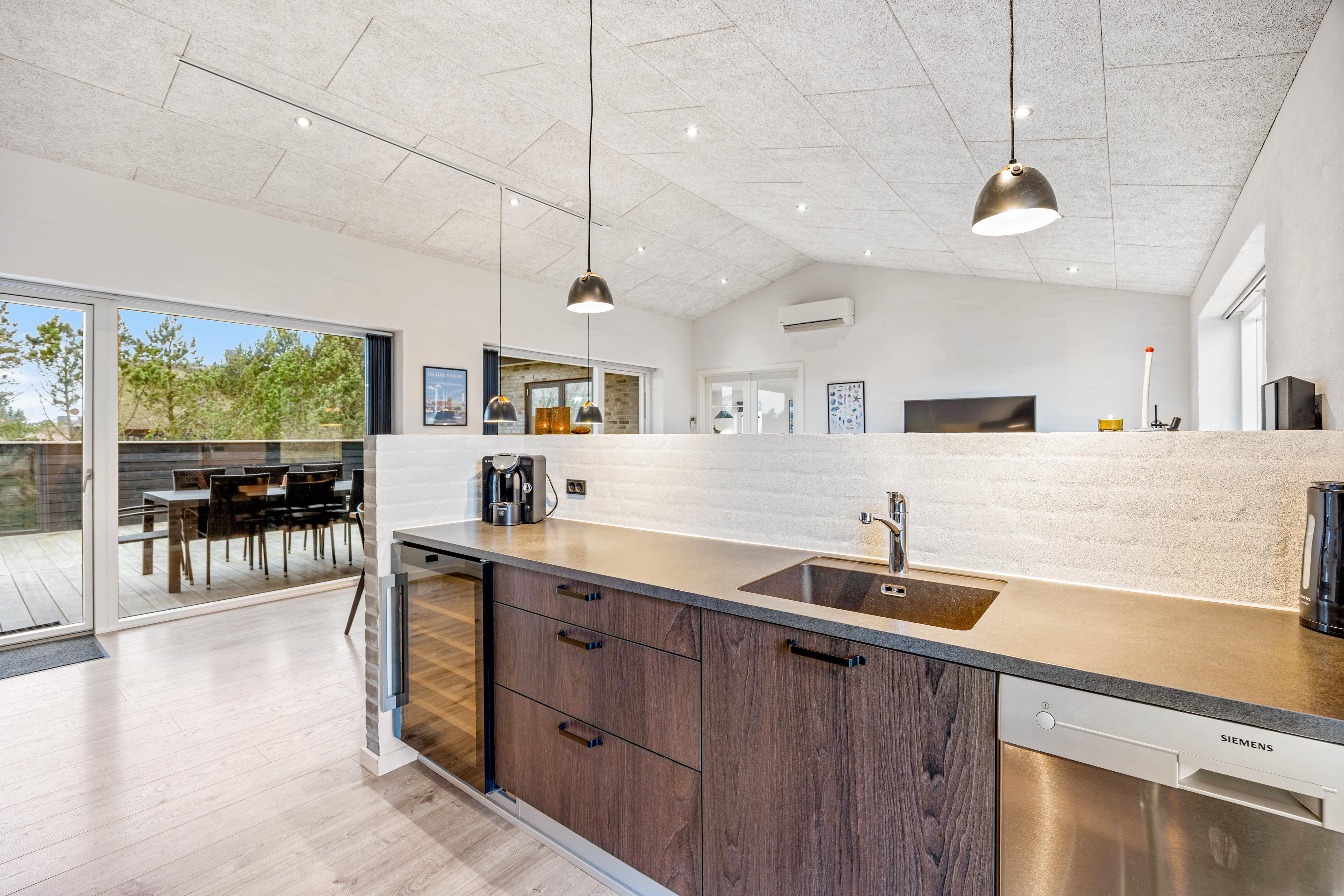 Det luksuriøse feriehus i Nr. Lyngvig er opført i 2020 og råder over hele 170 flotte kvadratmeter. Her kan I uden problemer tage hele familien eller venneflokken med på ferie, og også hundene er velkomne i huset. Den moderne indretning i kvalitetsmaterialer rummer alt, hvad feriehjertet begærer, og der er både sørget for underholdning og wellness.