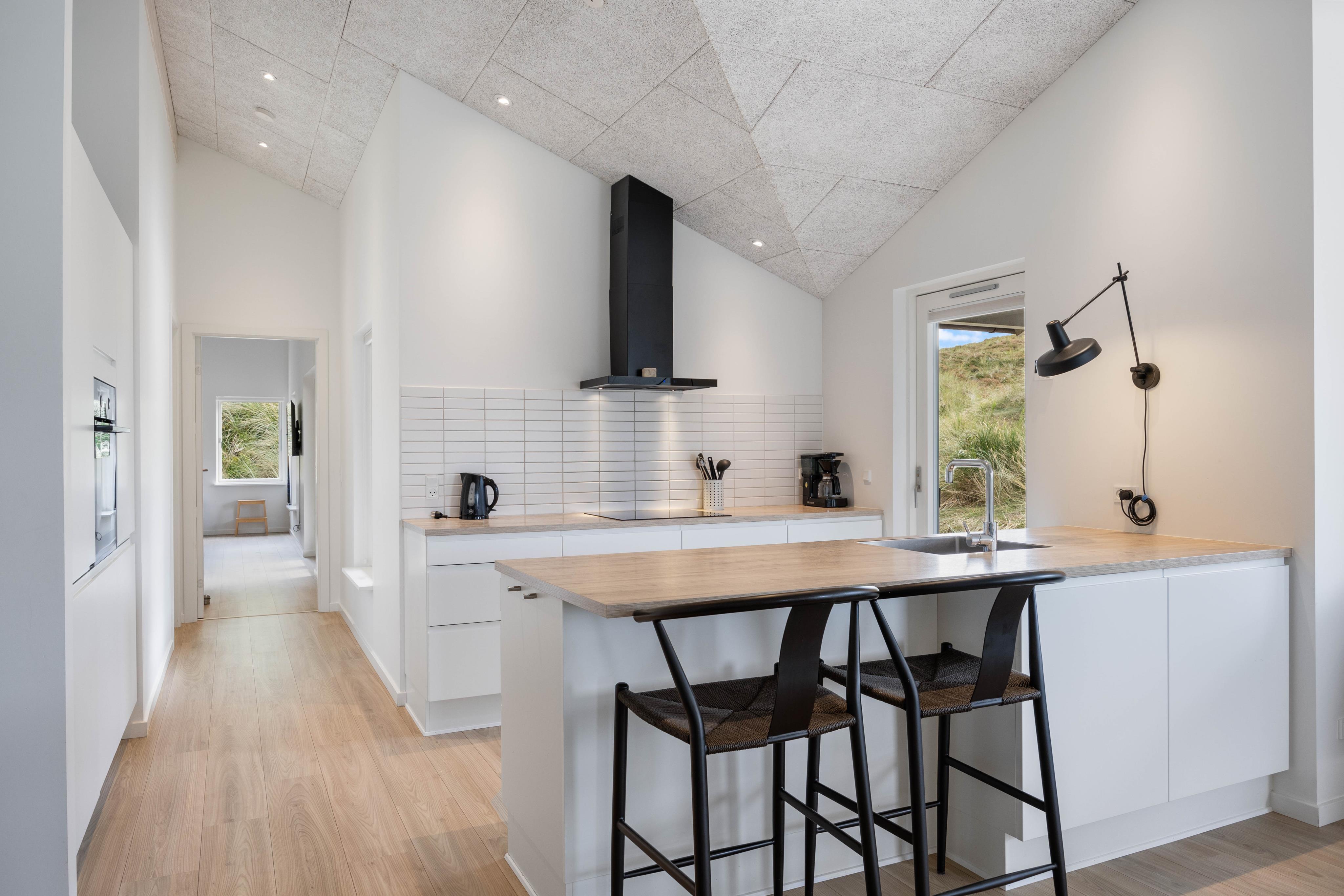 Huset er meget moderne og alligevel hyggeligt indrettet. Rumsinddelingen er god, og køkkenet er meget godt udstyret. Sengene er meget komfortable, og med de to opholdsområder har man altid et dejligt sted at slappe af med flere personer. Huset ligger indlejret i klitlandskabet, udstyret med dejlige terrasser og møbler, så man næsten kan sidde ude i al slags vejr.