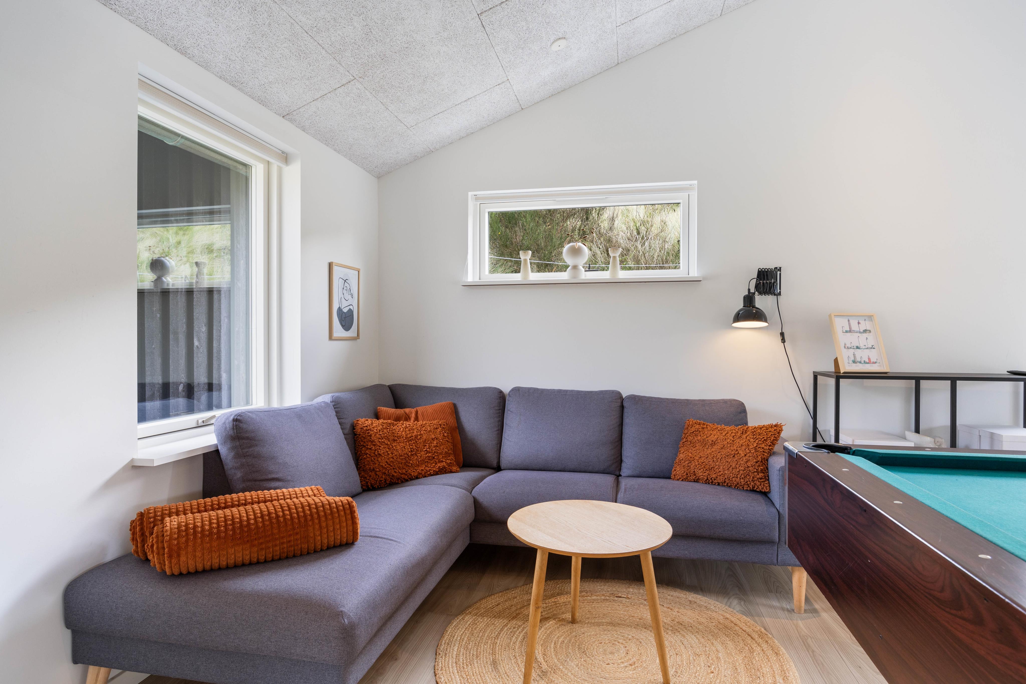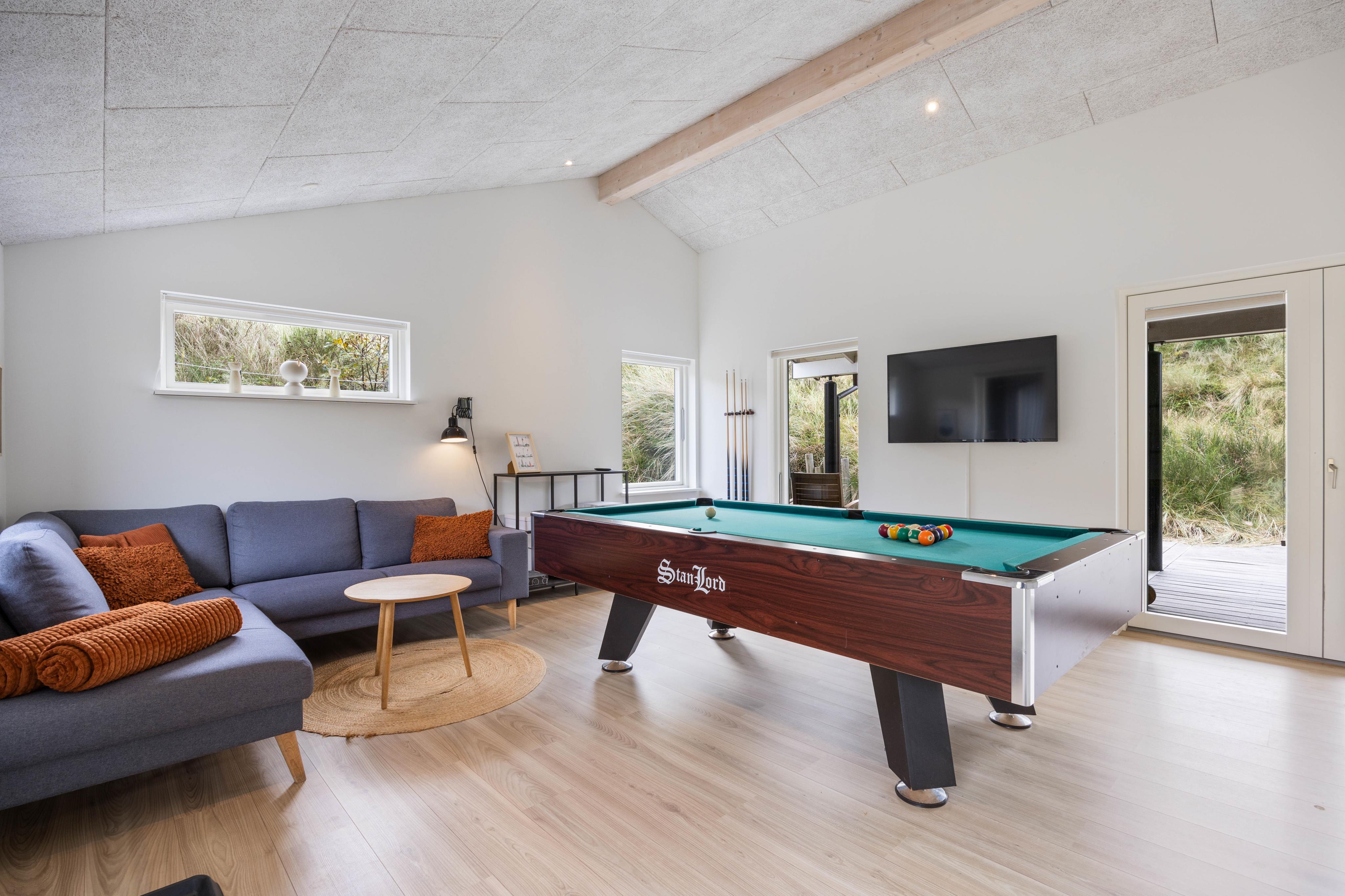 Feriehusets femstjernede vurdering er ikke til at tage fejl af. Den gennemførte indretning indeholder blandt andet 2 badeværelser, det ene med spabad og sauna, hvor de wellnessglade gæster vil finde sig godt til rette. Udover er der et stort aktivitetsrum med billard og bordtennis for dem, der godt kan lide at konkurrere med og mod hinanden.
