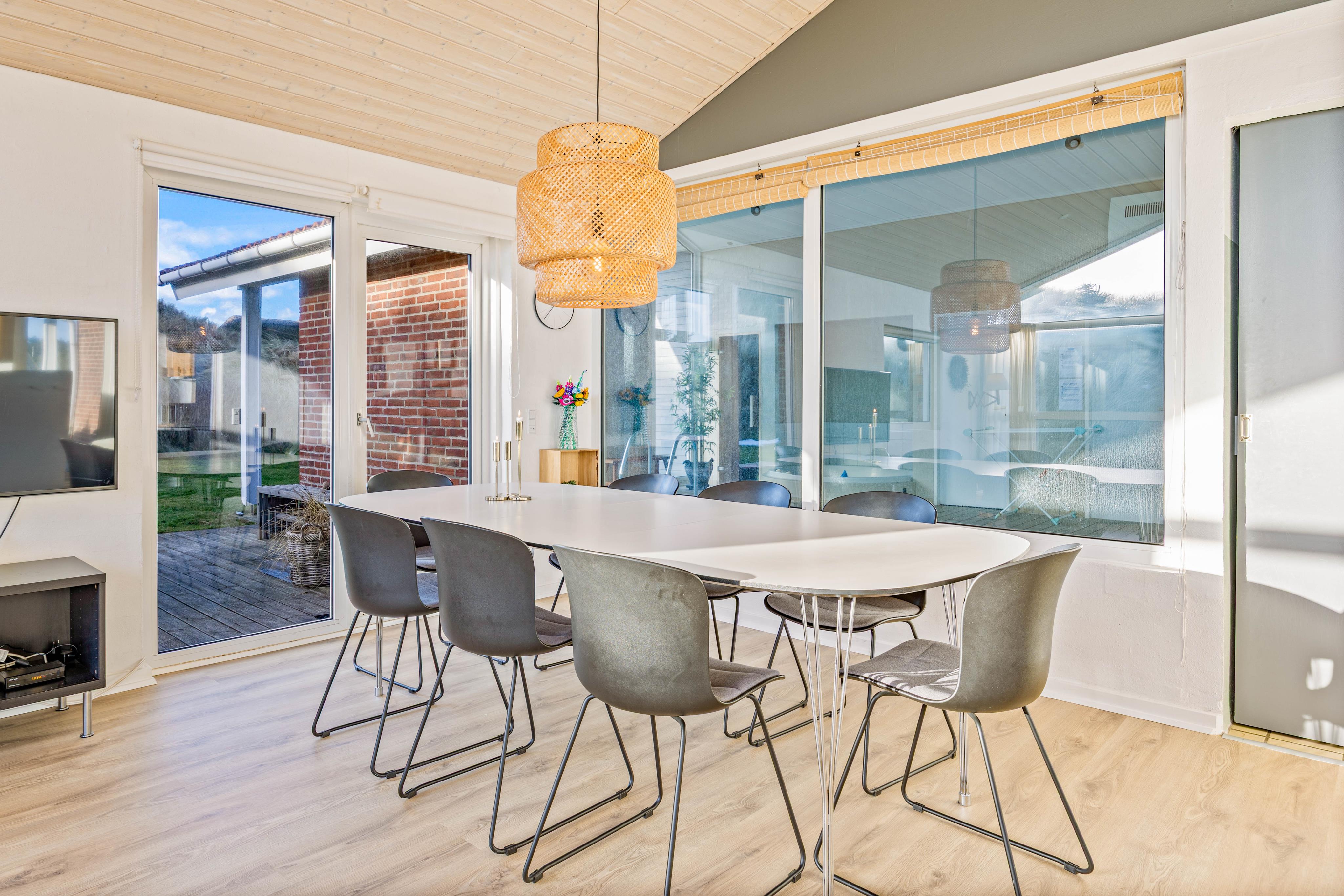 Feriehuset tilbyder alt, hvad man kan ønske sig til et afslappende ferieophold. Det er beskyttet beliggende og har en super indretning med pool, sauna og whirlpool. Huset har tre terrasser (øst, syd, vest), der kan bruges hele dagen afhængigt af vejret. På en klit tilhørende ejendommen er der en bænk med bord. Herfra kan man ikke kun se det herlige klitlandskab men også Vesterhavet og fjorden. Dejligt, at man også må tage sin hund med i huset. Meget anbefalelsesværdigt!!!