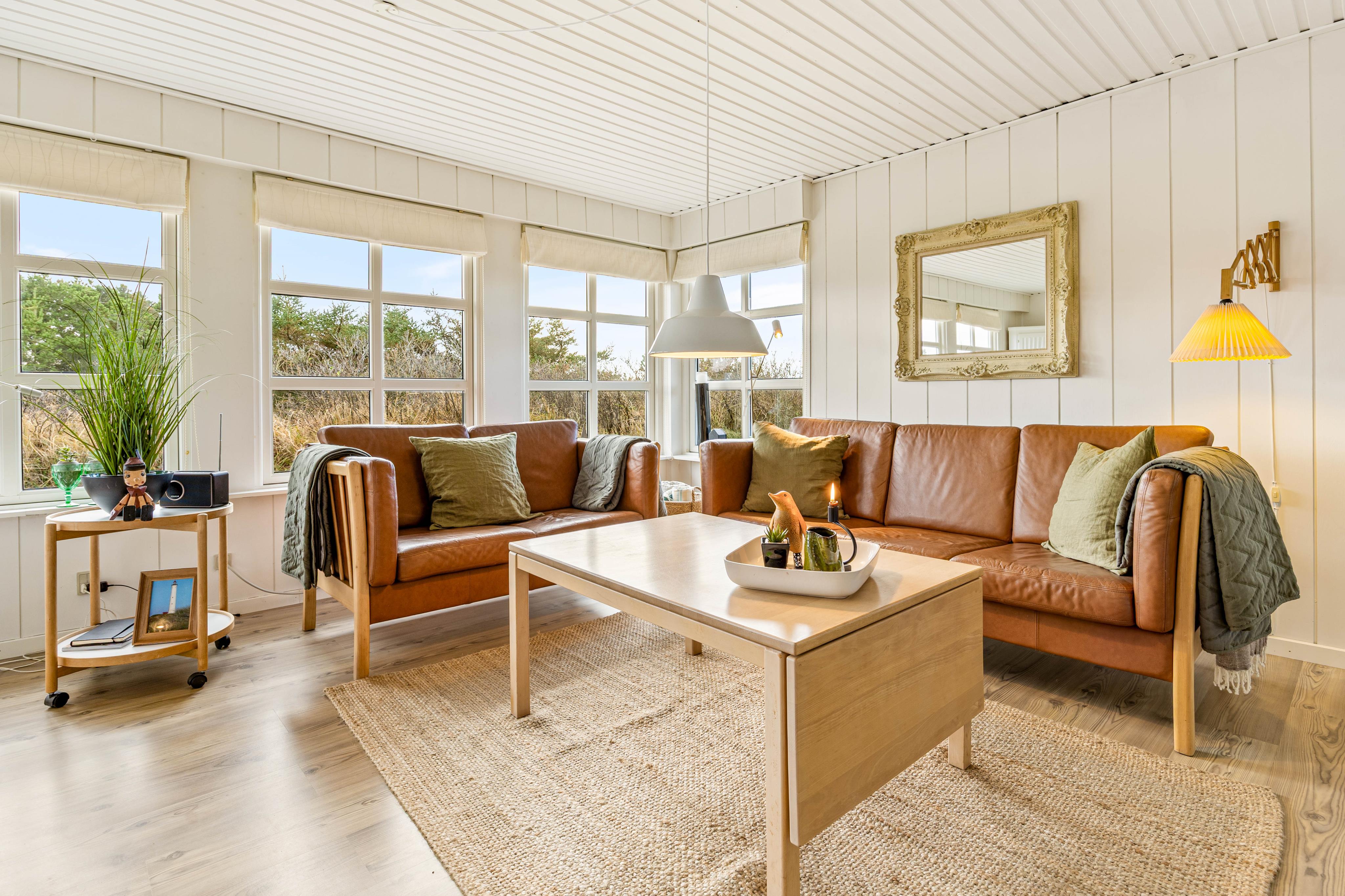 Sommerhuset ligger på en naturgrund, hvor I har masser af fred og ro omkring jer og mulighed for at nyde udsigten hen til Nr. Lyngvig Fyr. Udenfor kan I vælge mellem flere skønne terrassemiljøer – en åben terrasse til solrige eftermiddage, en overdækket terrasse til ly for småregn samt en afskærmet terrasse, hvor I kan nyde roen. Om aften kan I finde grillen frem og nyde et dejligt måltid udenfor.