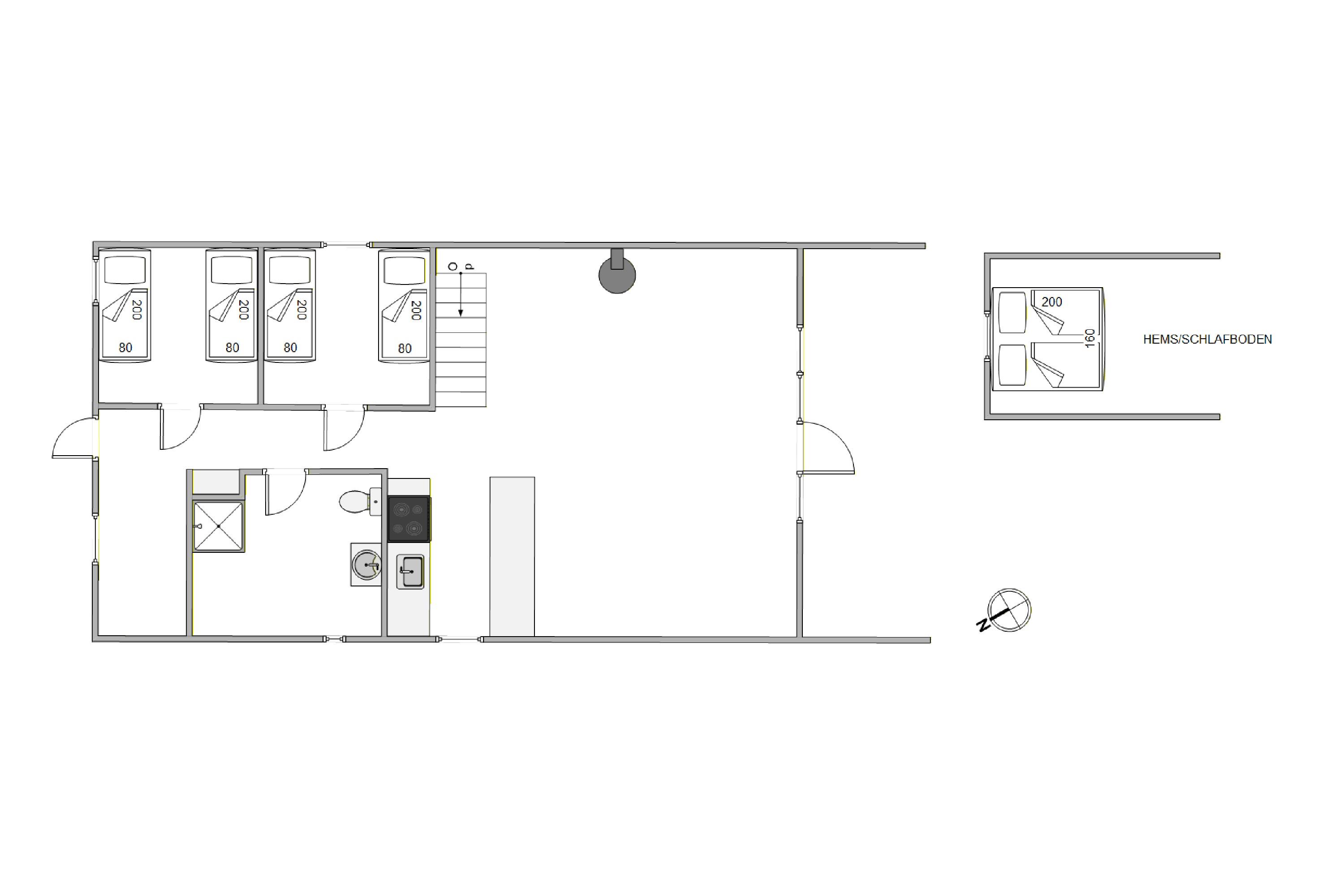 De 4 sovepladser fordeler sig på to soverum i stueplan og en hems. En energivenlig varmepumpe sikrer, at I altid har en god temperatur i feriehuset, og skal det være ekstra varmt og hyggeligt, kan I tænde op i brændeovnen i stuen. Lyden af den knitrende ild skruer bare automatisk lidt ekstra op for feriestemningen.