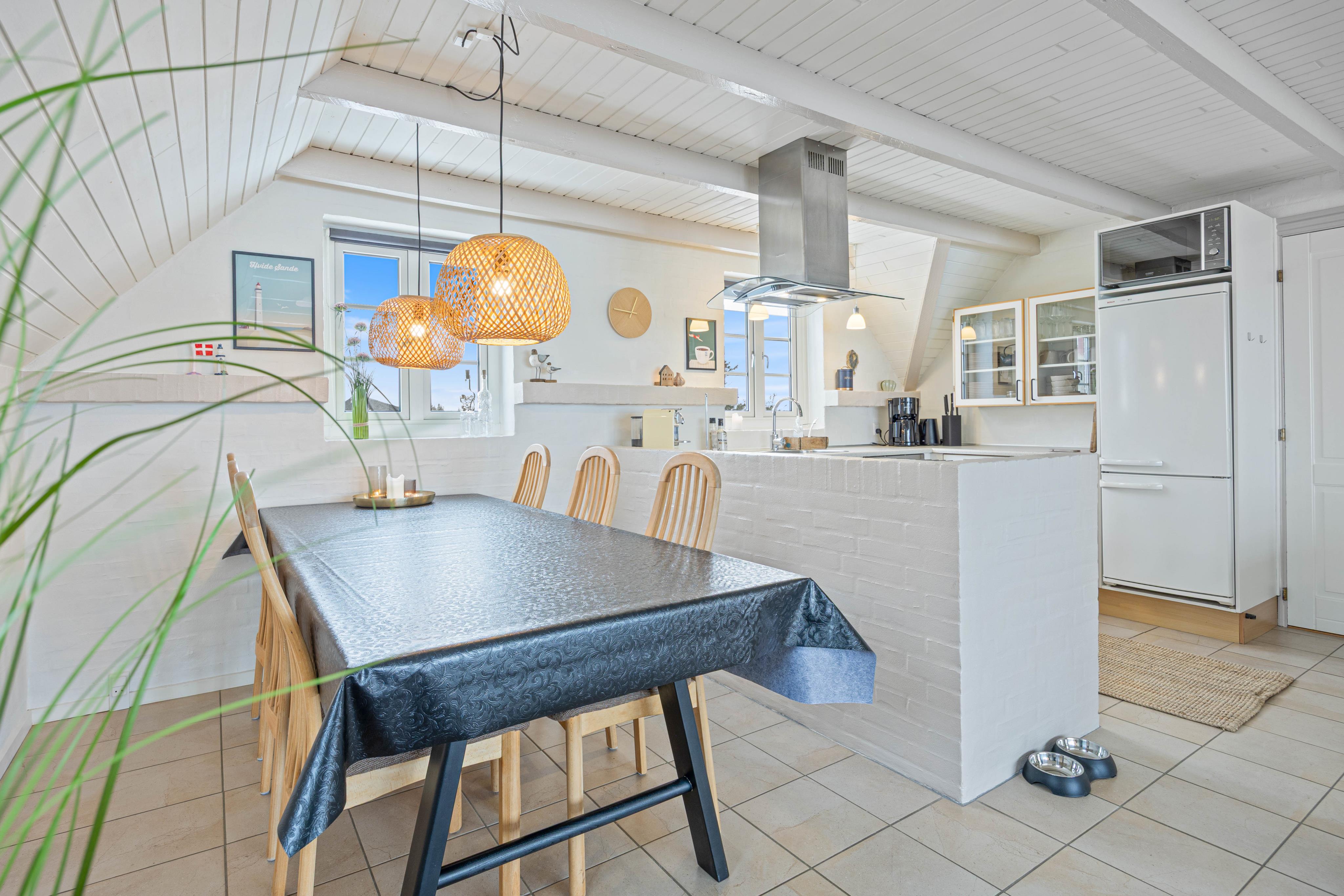Sommerhuset har en afskærmet terrasse, der giver jer mulighed for at nyde grillretter på de inkluderede havemøbler, mens I suger den storslåede panoramaudsigt til jer. Huset er beliggende på en skøn klitgrund, der understøtter en følelse af privatliv og nærhed til naturen. Her kan I have familiens bedste ven med, da op til én hund er tilladt, hvilket gør det nemt at inkludere alle medlemmer i ferien.