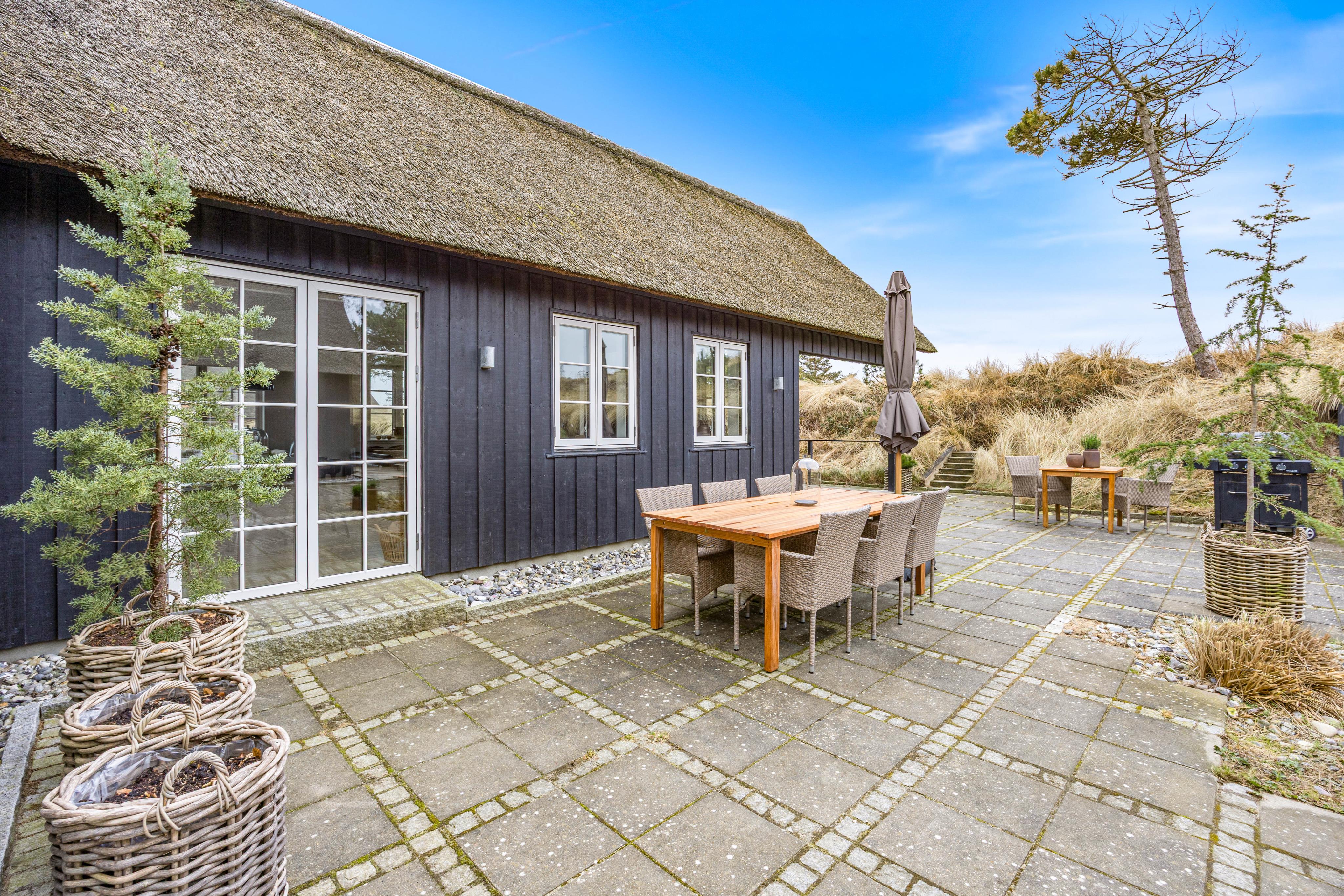 Udenfor får I en lækker og fuldstændig ugeneret terrasse med både en afskærmet og overdækket del. Havemøbler, liggestole og gasgrill står klar, så I kan nyde feriedagene og det gode vejr i fulde drag helt for jer selv. Der er også en udendørsbruser, hvor I kan skylle sandet af fødderne efter en tur på stranden. Bruseren kan benytes i perioden april til oktober måned.