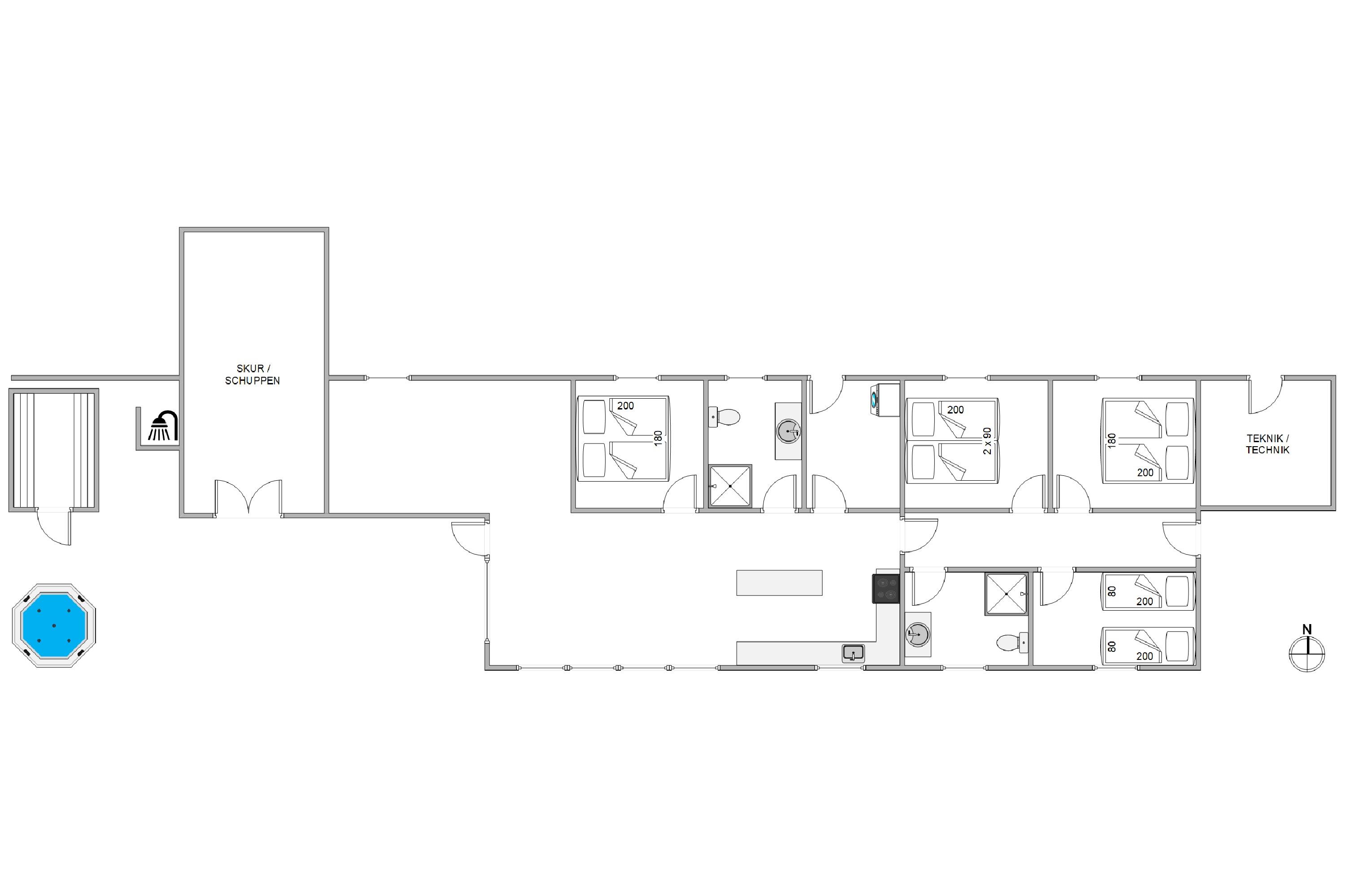Med 120 m2 godt indrettet husareal tilbyder sommerhuset plads til op til 8 feriegæster. Der er fire rummelige og godt indrettet soveværelser, så I kan nyde en god nats søvn efter en dag med eventyr og aktiviteter. Sommerhuset er udstyret med moderne faciliteter som opvaskemaskine, vaskemaskine og tørretumbler, der gør ferien ekstra bekvem. Med gulvvarme i badeværelset kan I nyde varme fødder, selv på de kølige morgener. Den smarte og energibesparende luft-til-vand varmepumpe sikrer et behageligt indeklima året rundt. Disse detaljer gør sommerhuset ideelt til ophold på alle tidspunkter af året, uanset vejret.