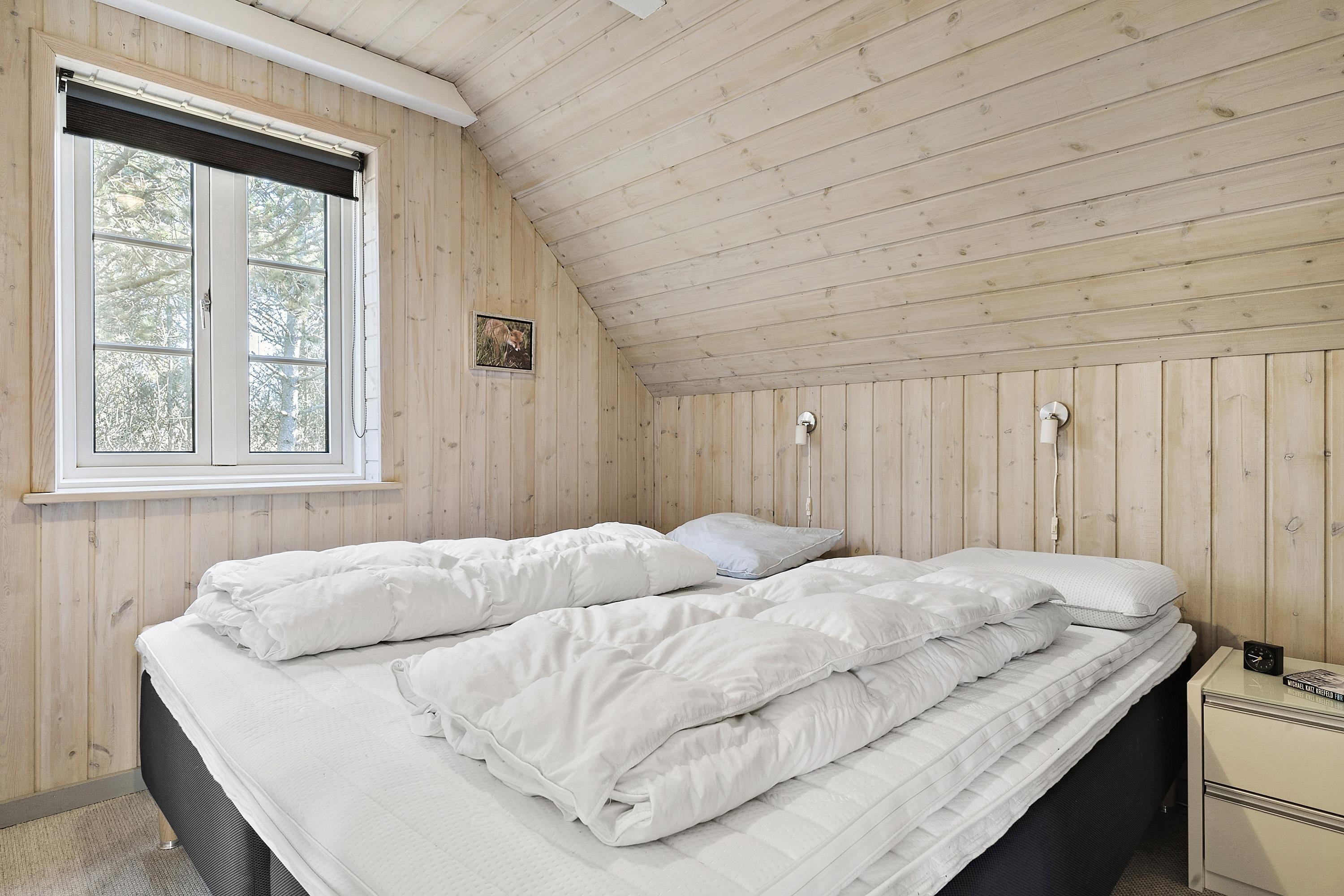 Sommerhuset byder på tre lyse og indbydende soveværelser – 2 med komfortable dobbeltsenge og 1 med en hyggelig køjeseng, hvor de yngste gæster kan få deres egen lille base.