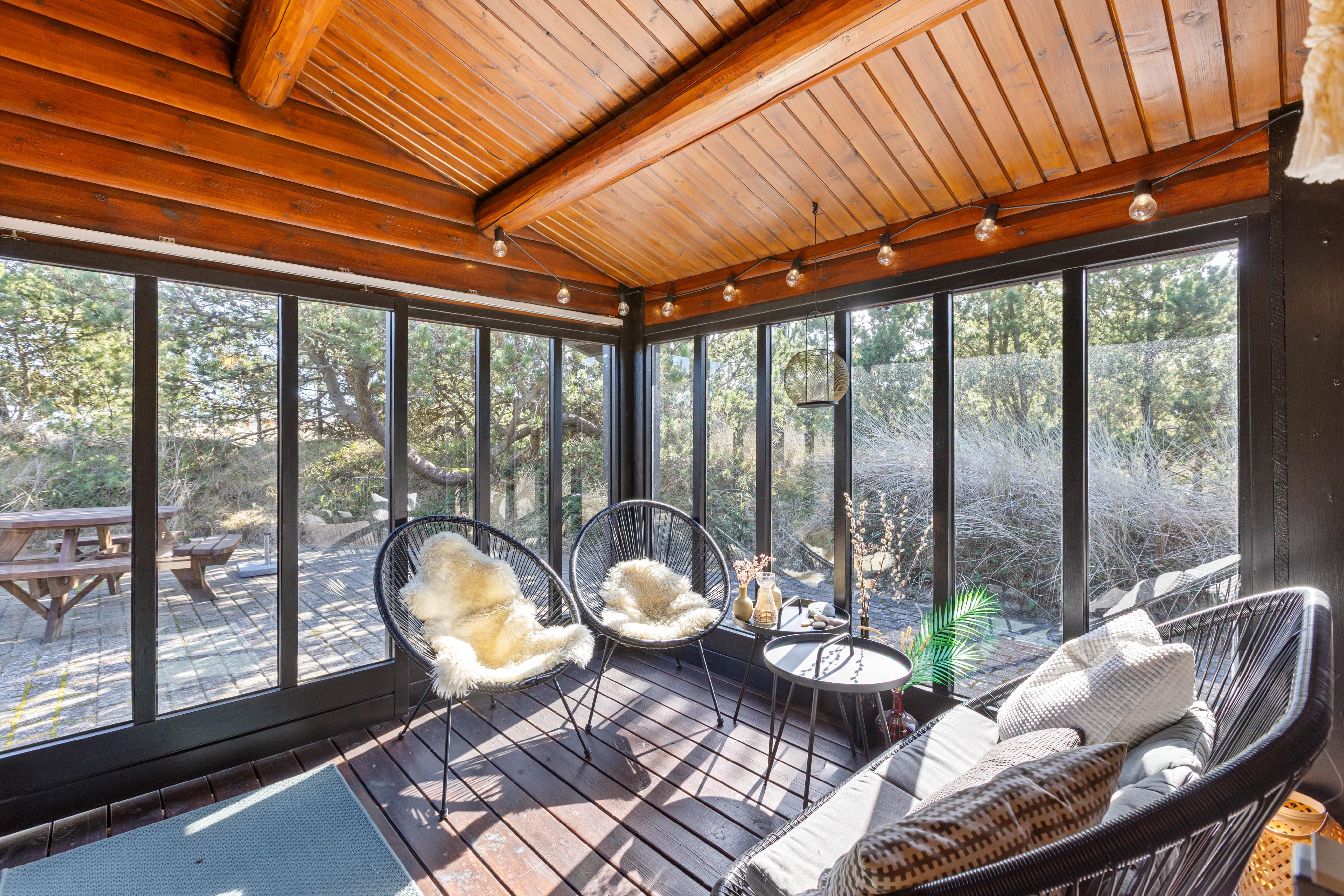 Et godt sted at kunne trække sig tilbage på de lidt køligere dage er udestuen, her er altid dejligt lunt.