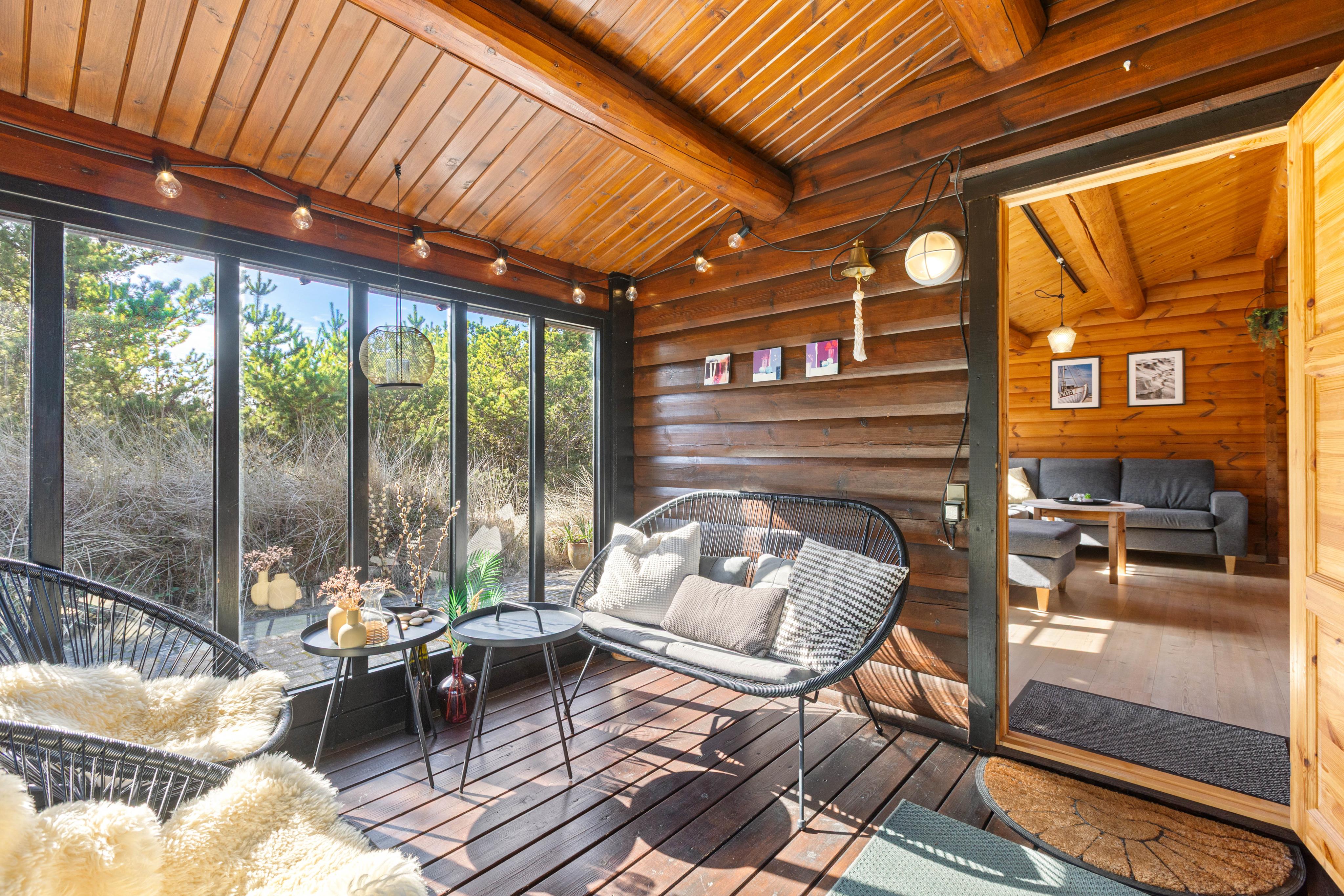 Dette fine træhus på Marehalmen 12 i Søndervig emmer af ægte sommerhushygge. Feriehuset er velegnet både til den store familie, men også til to familier, som ønsker sig en afslappende ferie midt imellem hav og fjord. Sommerhuset har et tilstødende anneks, med ekstra sovepladser og eget badeværelse. I kælderen under annekset finder I husets aktivitetsrum med dart, billardbord og bordtennis. Her kan op til ni personer og jeres to hunde holde en skøn ferie i den vestjyske natur.