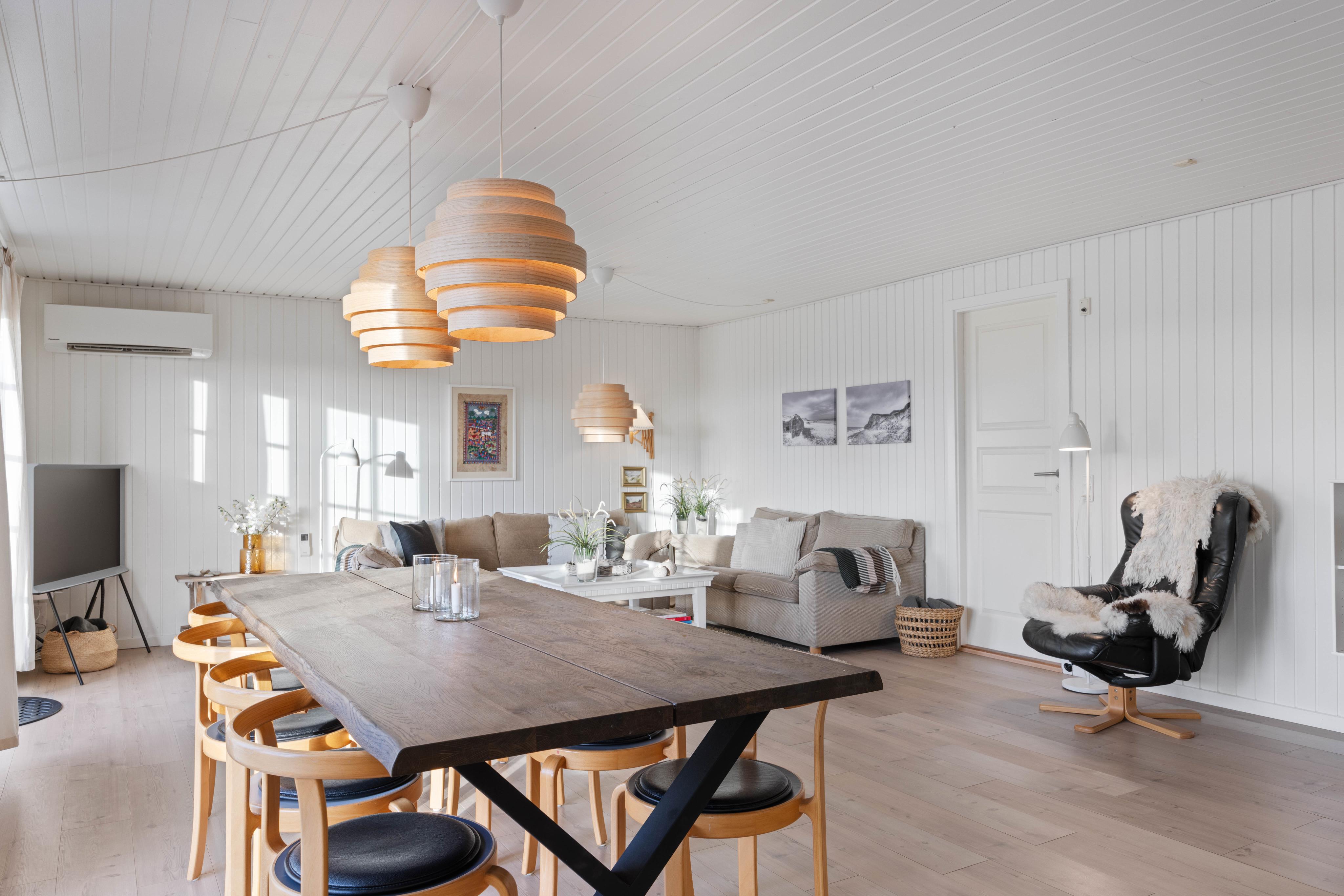 Huset er meget enkelt udefra. Indenfor meget kærligt indrettet. Super at man har 2 terrasser at sidde på, redskabsskuret var tilgængeligt, og man kunne opbevare havestolene der. Hænderoserne som skel til naboerne i soveområdet synes jeg er smukke og giver tryghed. I spisestuen har man udsigt over engen og vejen, hvilket også er dejligt at se, hvad der sker udenfor. I opholdsområdet havde vi plads nok til at lægge en gymnastikmåtte ud, hvis det var for blæsende udenfor. Vores tæve og vi har følt os meget godt tilpas. Dog ville det være for trængt for 8 voksne. Vi kunne godt lide det. Vi kommer gerne igen.