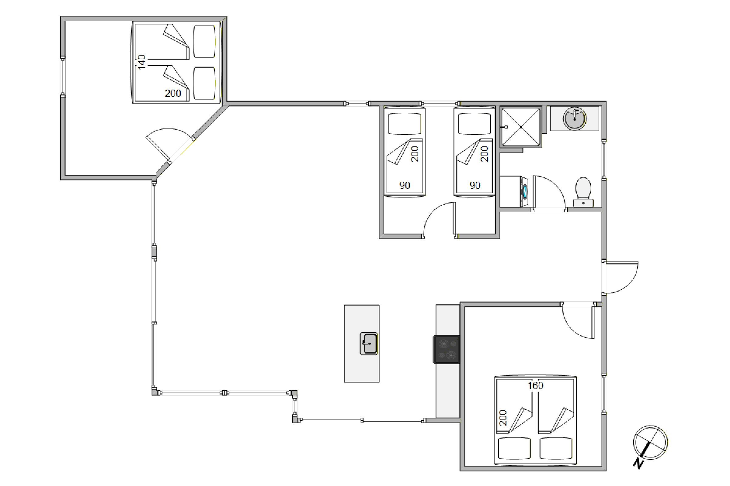 Sommerhuset byder på 3 lyse soveværelser med i alt 2 dobbeltsenge og 2 enkeltsenge, så alle feriegæster har gode forudsætninger for en veludhvilet ferie. Badeværelset fremstår lyst og indbydende og er udstyret med behagelig gulvvarme, så kolde fødder undgås på de køligere dage.
