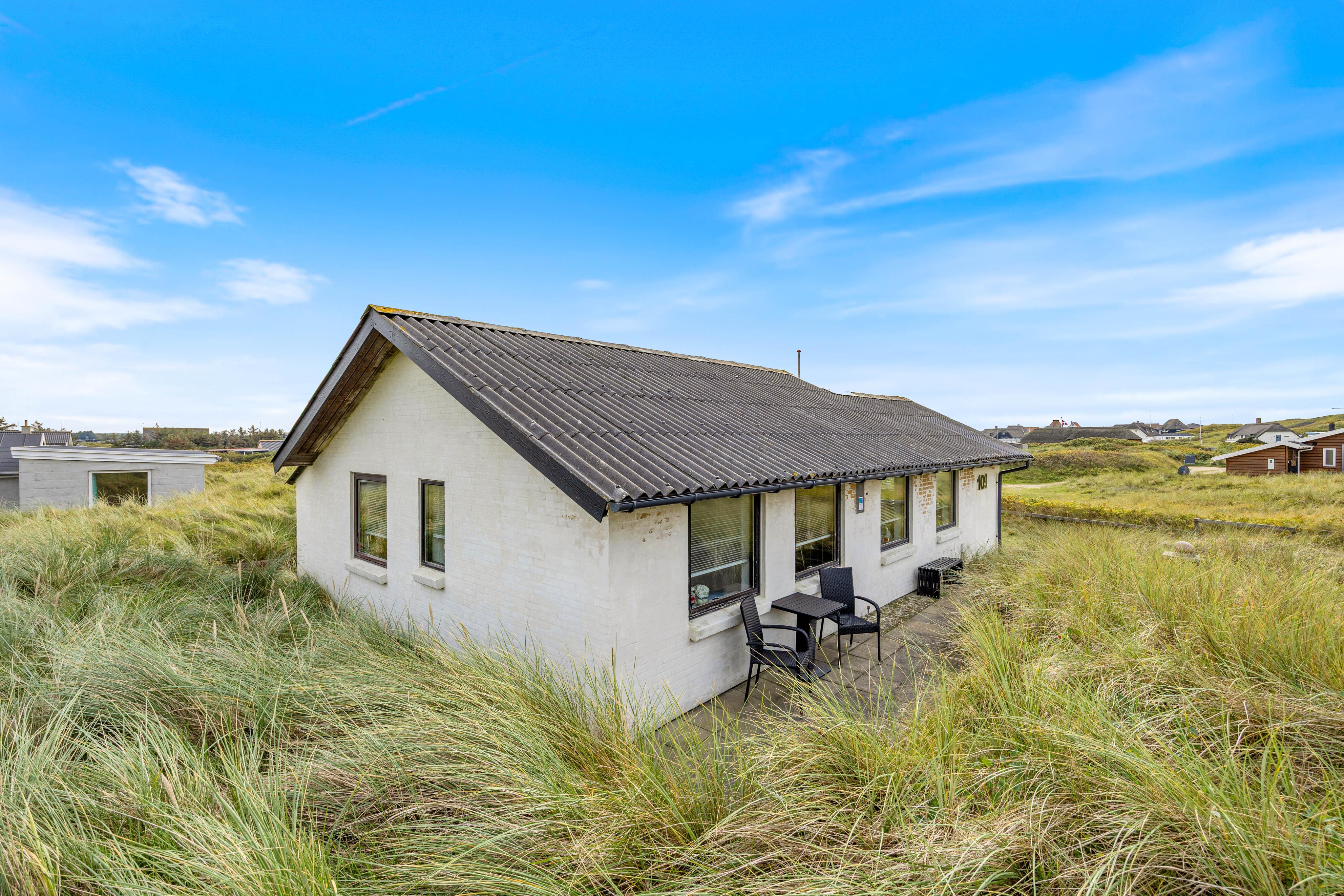 Feriehuset er en ældre men fuldt funktionelt hus i en meget smuk beliggenhed midt i klitlandskabet nær stranden. Indretningen er kærligt designet, så man hurtigt føler sig hjemme der.