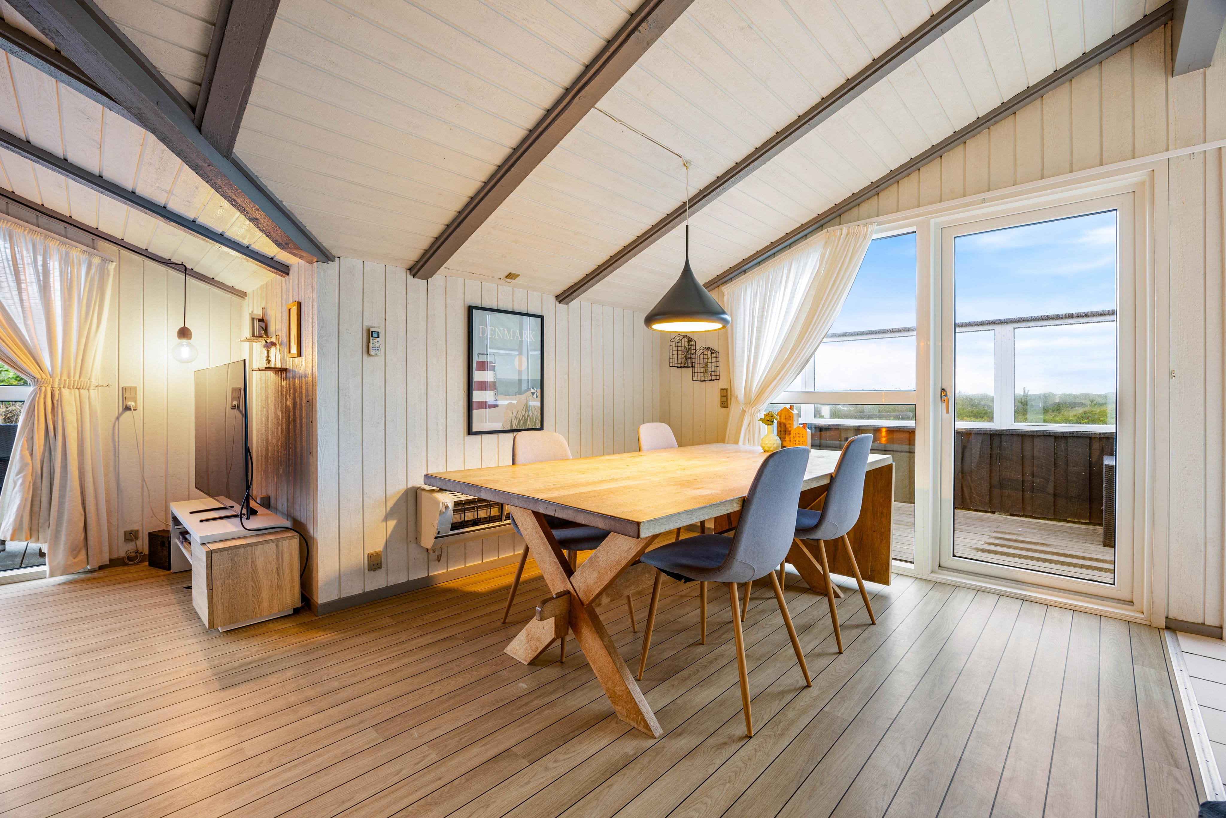 Sommerhuset ligger for enden af en blind vej øverst på en klittop, hvilket giver rolige omgivelser med mulighed for en dejlig afslappende ferie. Vinduerne lader masser af lys slippe ind og giver jer samtidig en smuk udsigt ud over klitlandskabet. Den flotte sandstrand kan også hurtigt nås til fods, da den kun ligger 500 meter væk fra huset. Her kan I bruge masser af herlige timer, og børnene og hunden kan få frit løb. Skulle vejret pludselig skifte til det værre, er I også hurtigt tilbage i varmen igen, hvor afslapningen kan fortsætte.