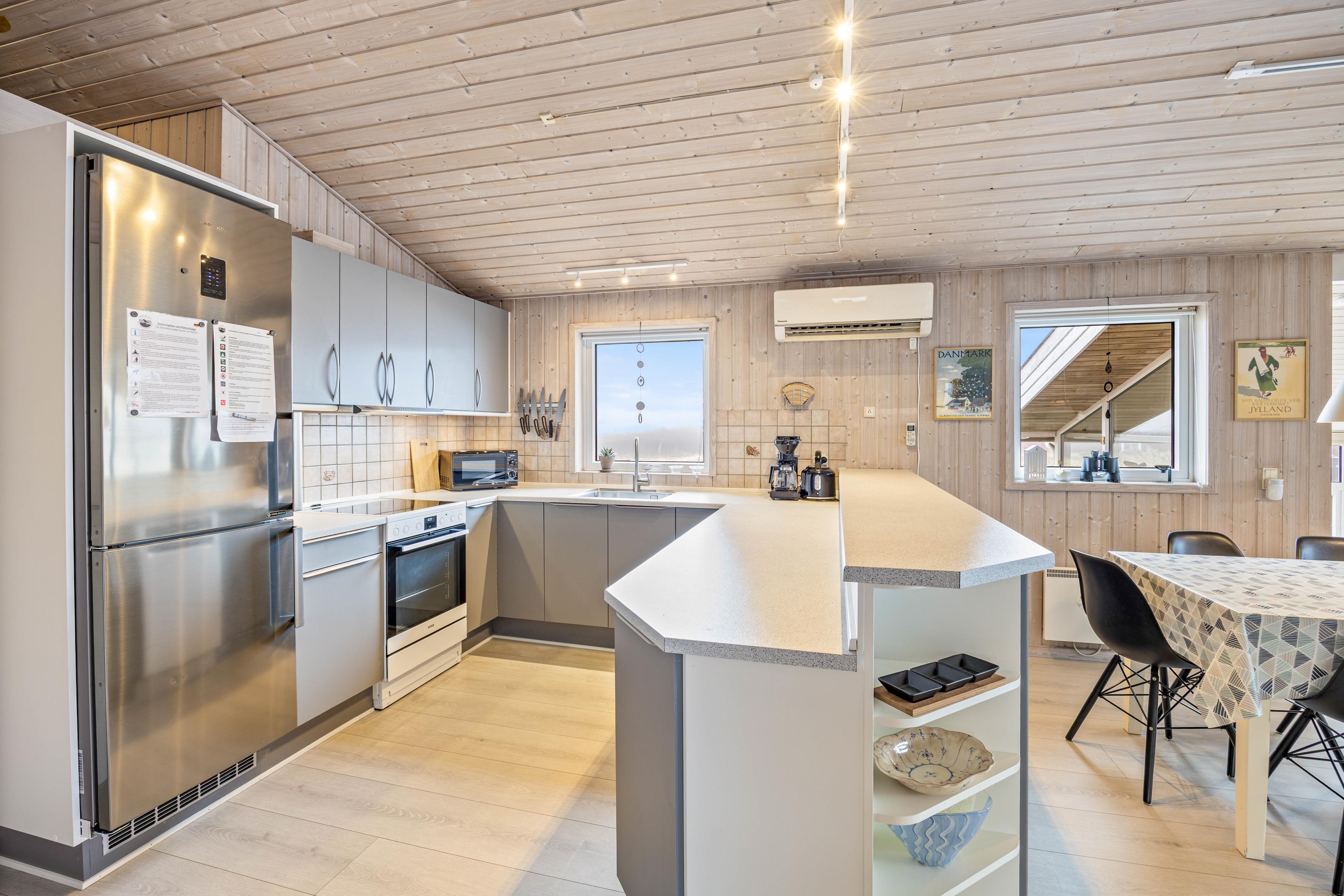 Et fremragende udstyret feriehus. Det er meget rent. Der er et ekstra køleskab og en fryseboks i opbevaringsrummet. Spil til indendørs og udendørs brug er tilgængelige. Alt er tænkt på i køkkenet. Muffinform, ovnfaste fade, hvidløgspresser, rivejern, store gryder og pander, masser af tallerkener og bestik. Fjernsynet har de gængse apps forudinstalleret. Hvis man har abonnementer til Netflix, Prime, HBO eller lignende, kan man hurtigt og nemt logge ind.