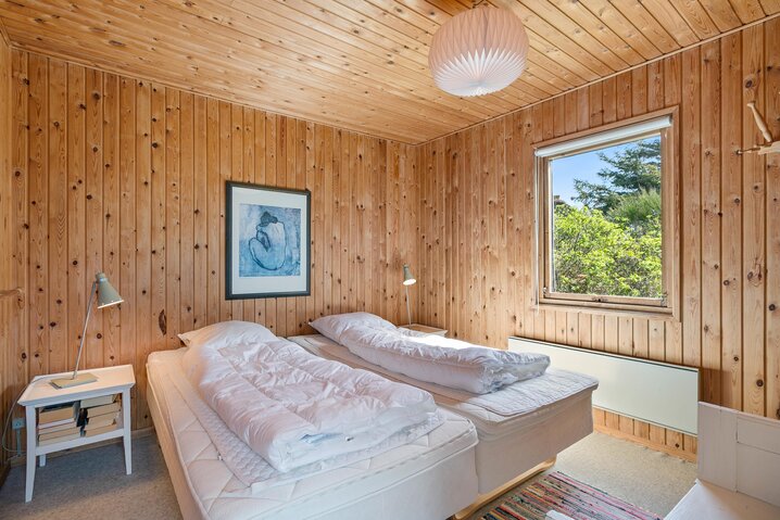 Sommerhusets hjerte er uden tvivl køkkenalrummet og udestuen, som begge har masser af vinduer, der lukker både lyset og naturen indenfor. Her kan I for alvor læne jer tilbage, og eventuelt benytte jer af sommerhusets trådløse internet og følge med I hvad der sker ude i den store verden. Hvis I også ønsker at skrue endnu mere op for den hyggelige atmosfære, kan I tænde op I sommerhusets brændeovn, der med sin dejlige varme tilføjer endnu mere hygge og autentisk sommerhusstemning.