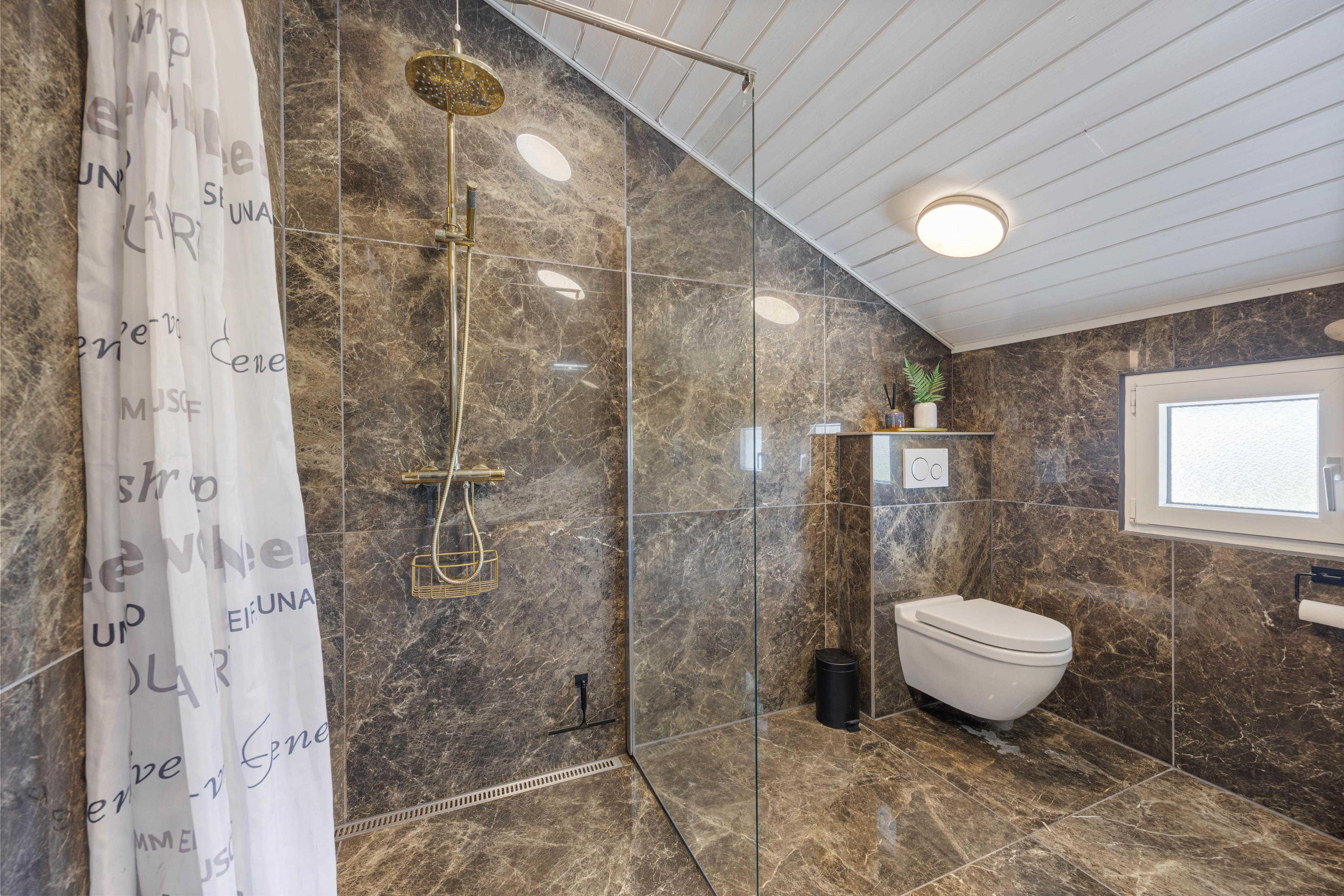 Sovepladserne er fordelt på tre soveværelser, som hver er udstyret med en god dobbeltseng. Et af soveværelserne har endda egen adgang til et af de to badeværelser. De 2 badeværelser er indrettet i moderne stil og udført i en høj standard med gulvvarme, hvilket desuden gør morgenrutinen til en ren fornøjelse.
