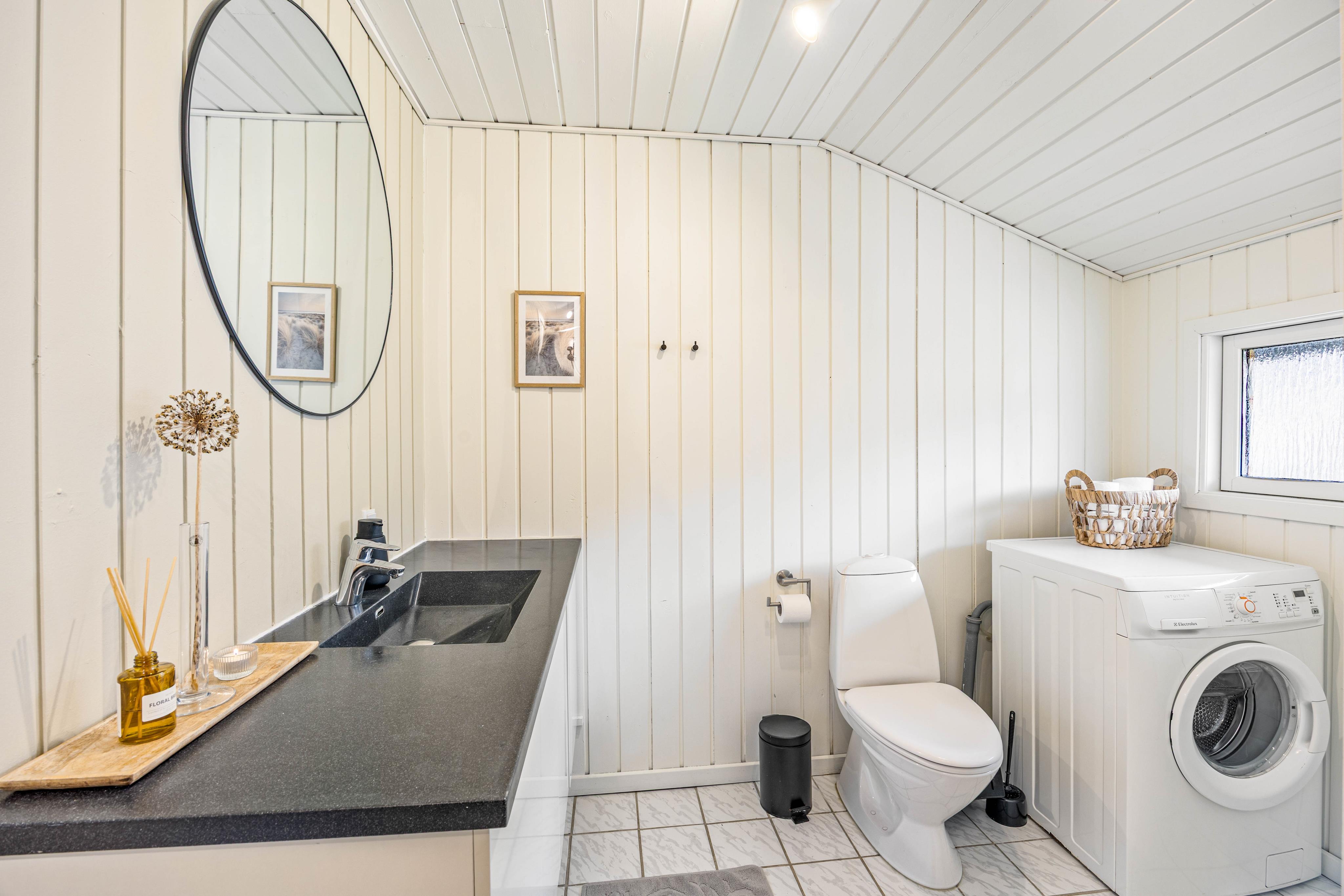 Her er der lagt op til rigtig kæreste- eller familiehygge. Det renoverede køkken er veludstyret, flot og utroligt velhold, og uanset om middagen står på pandekager eller den helt stor menu, så er det perfekt at samles ved det store spisebord. Her er der efter maden også god plads til samvær med spil og snak, imens opvaskemaskinen klarer oprydningen for jer. Skal det være ekstra varmt og hyggeligt, kan I desuden tænde op i sommerhusets brændeovn.