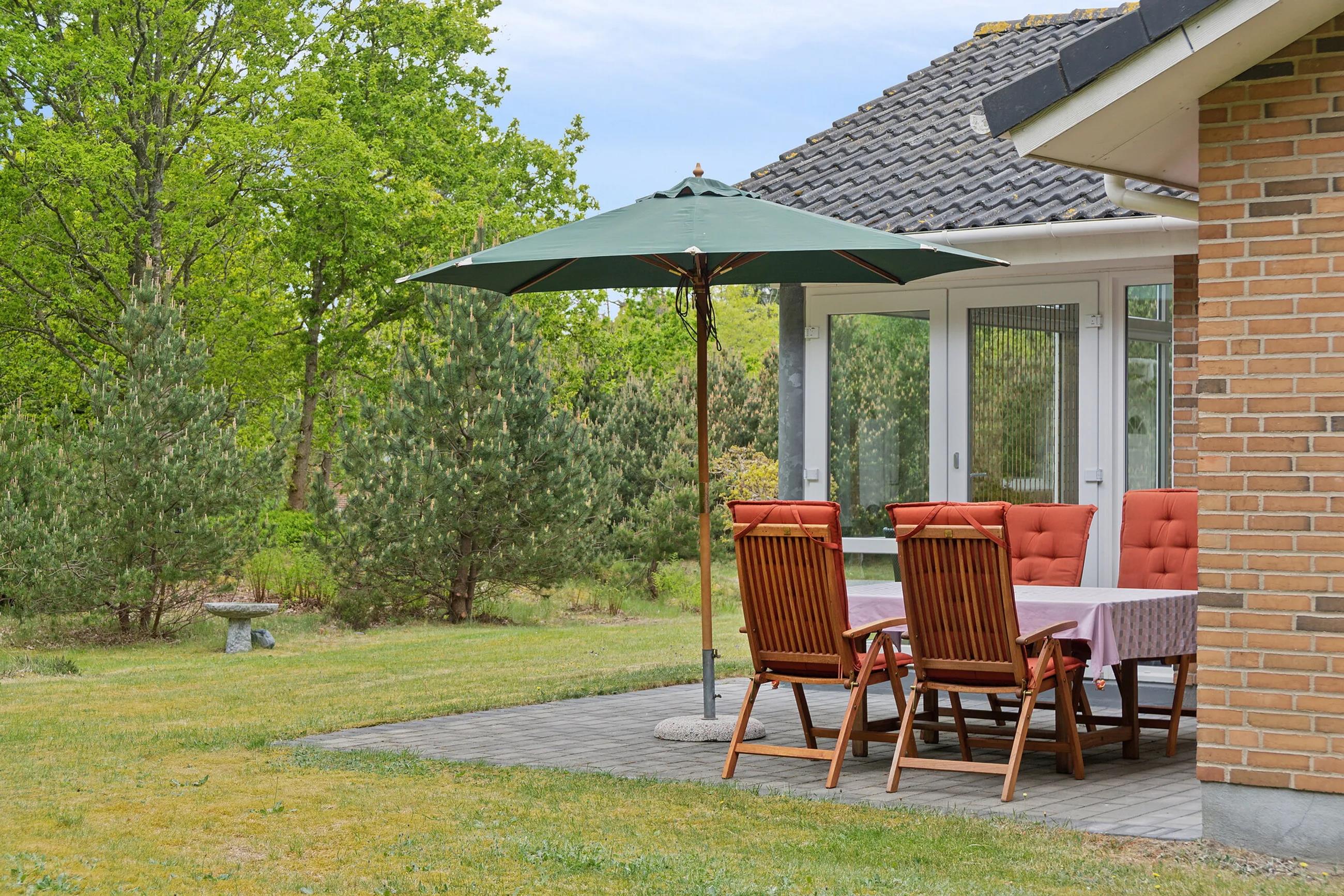 Sommerhuset ligger på en 2165 m² stor naturgrund, hvor hele familien kan nyde den smukke og fredelige natur. Til huset hører en åben terrasse, hvor I kan slappe af i solen eller nyde et måltid under overdækning, som I har tilberedt på grillen. Herefter kan I læne jer tilbage med en lækker kold drink og nyde det danske vejr og de omkringliggende omgivelser fuldt ud.