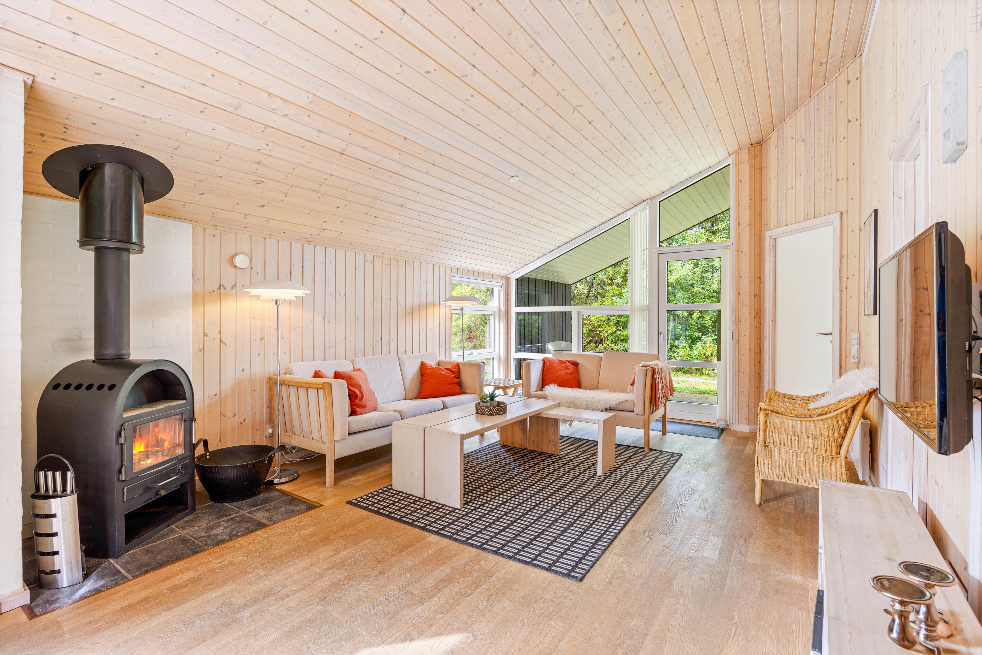 Køkkenalrummet og den dejlige stue med brændeovn er centrum for hyggen i dette charmerende sommerhus. Det åbne køkkenalrum er indrettet med moderne faciliteter og har alt, hvad man har brug for til at tilberede lækre måltider. Her kan man både lave mad og samtidig være en del af samværet med familie eller venner i stuen.