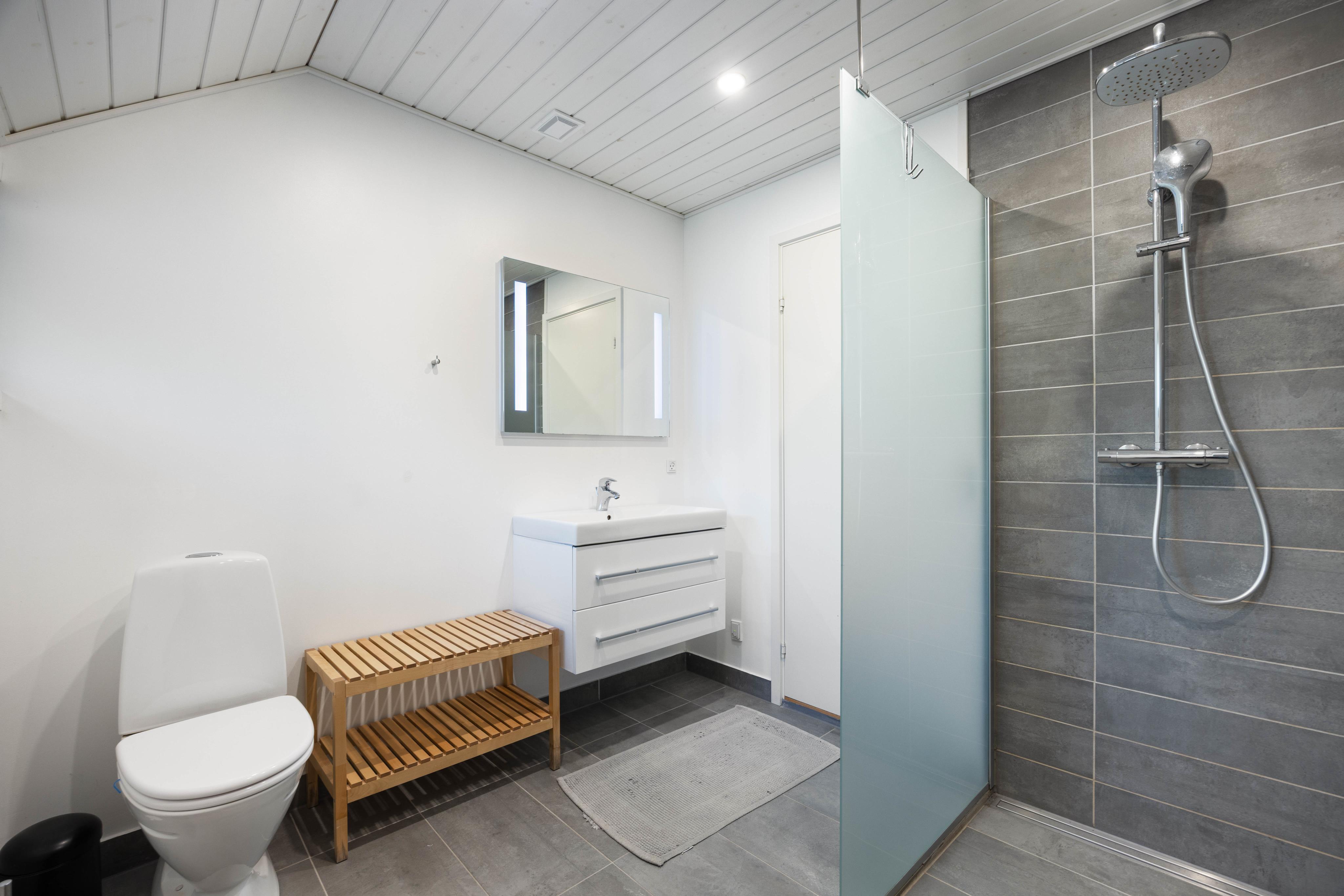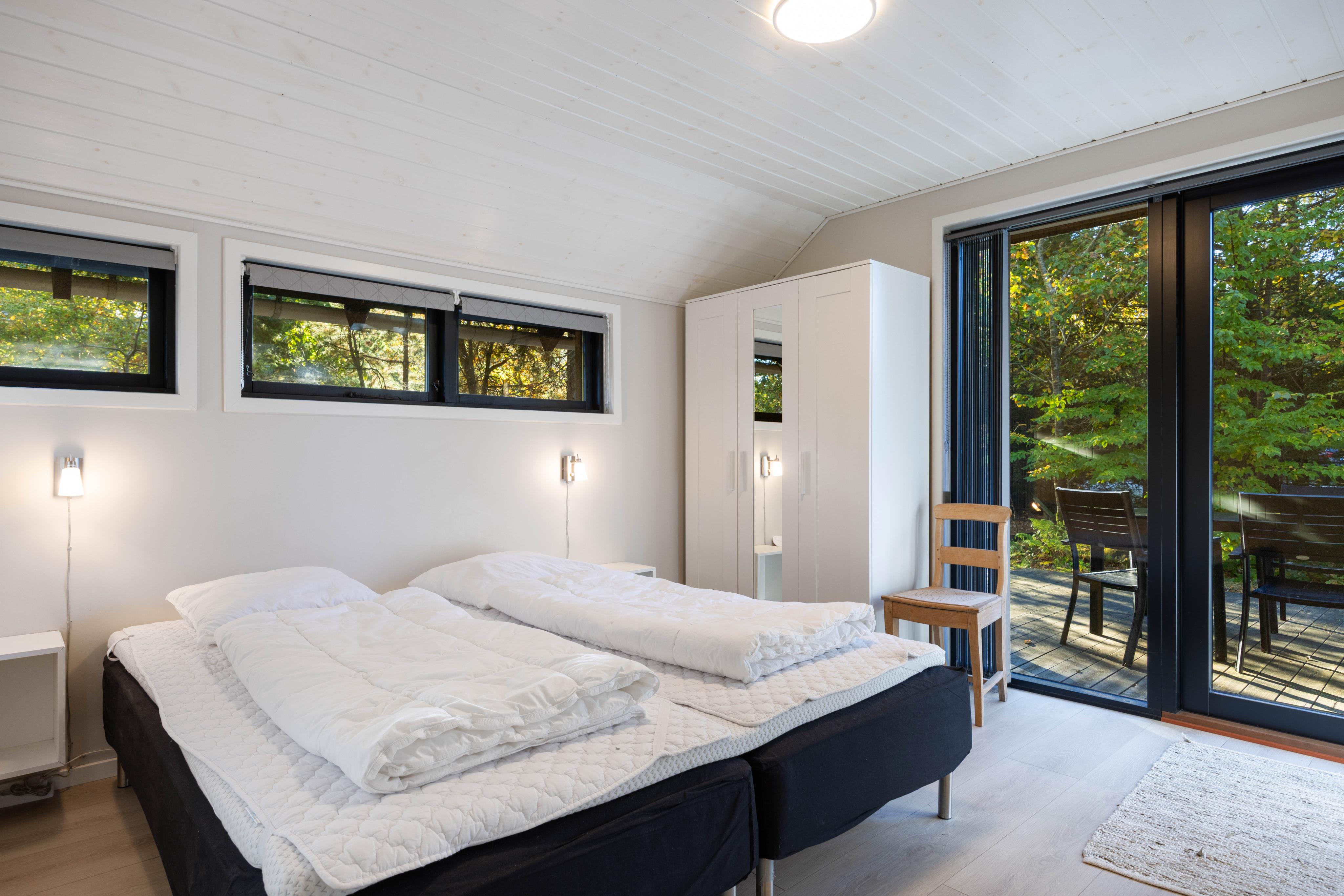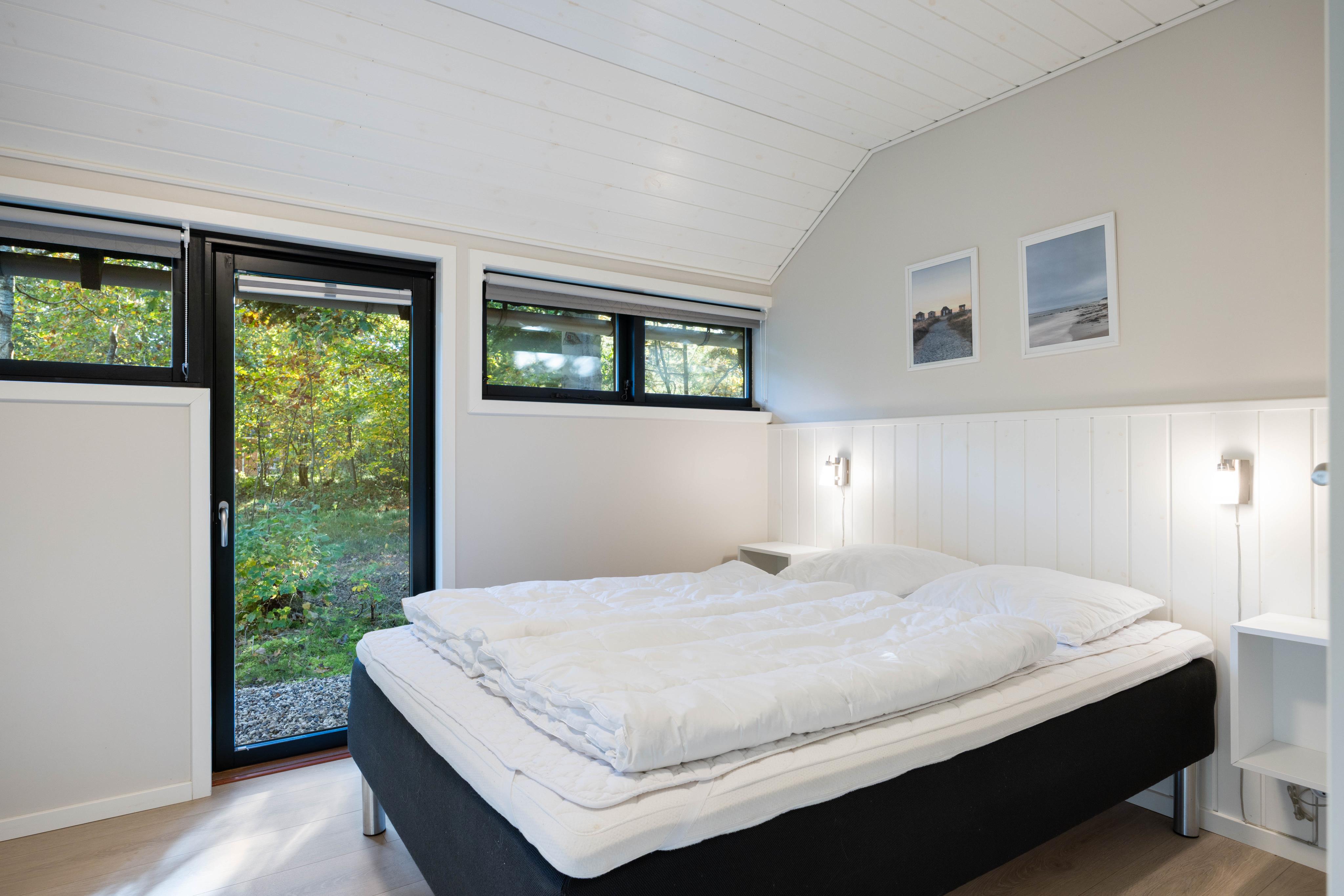 Sommerhuset har tre soveværelser, alle indrettet med dobbeltsenge, og hele to badeværelser – begge med komfortabel gulvvarme. Her er der god plads og moderne faciliteter til hele familien, og op til to hunde er også velkomne.