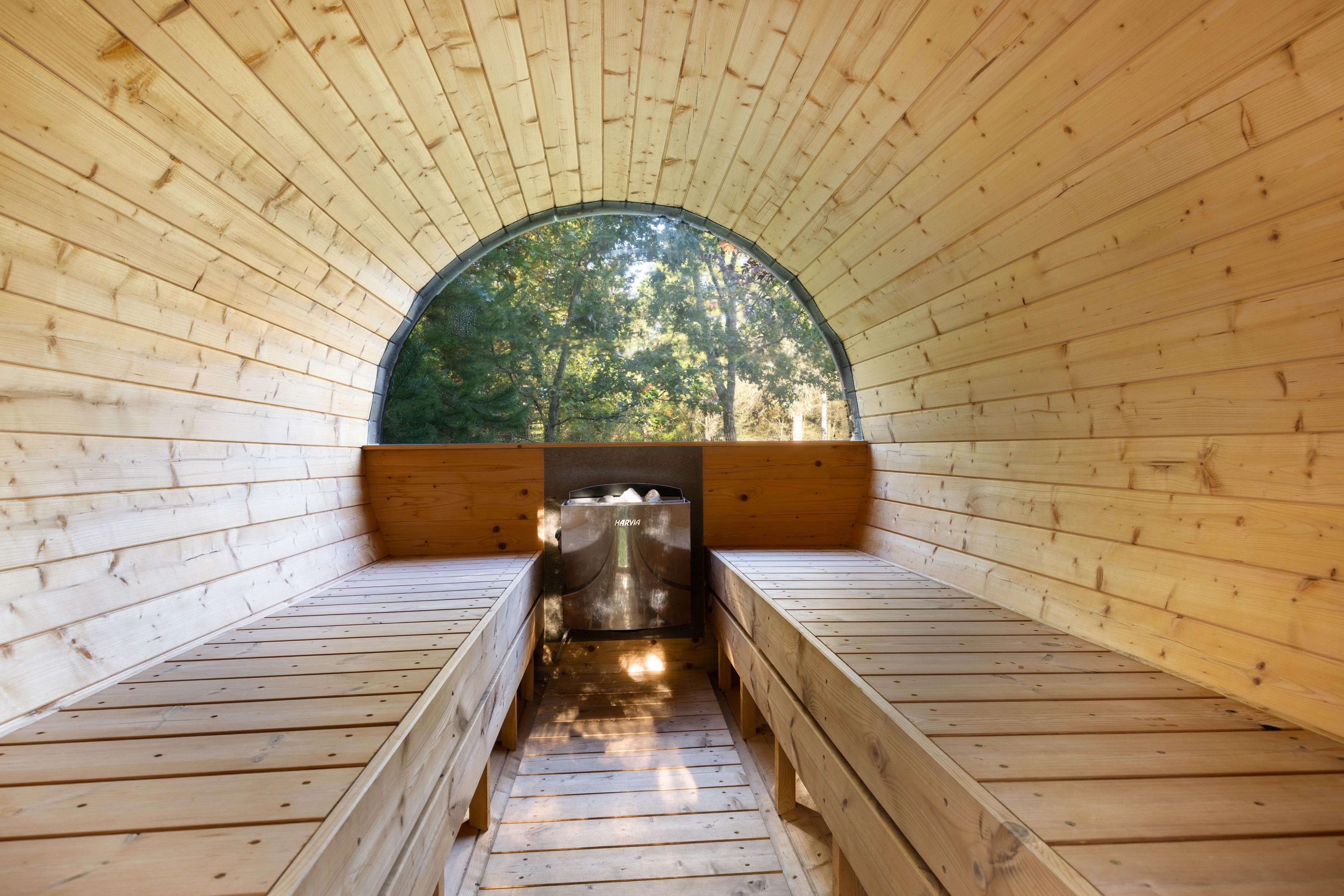 Den over 2.000 kvadratmeter store naturgrund er ideel til både afslapning og aktiviteter. Omkranset af træer og buske får I masser af privatliv og mulighed for at nyde det fri. Det store vildmarksbad og den udendørs sauna skaber en autentisk wellness-stemning, og den tilhørende udebruser fuldender oplevelsen. Her kan I nyde både varme sommeraftener og kølige vinterdage i naturens ro.